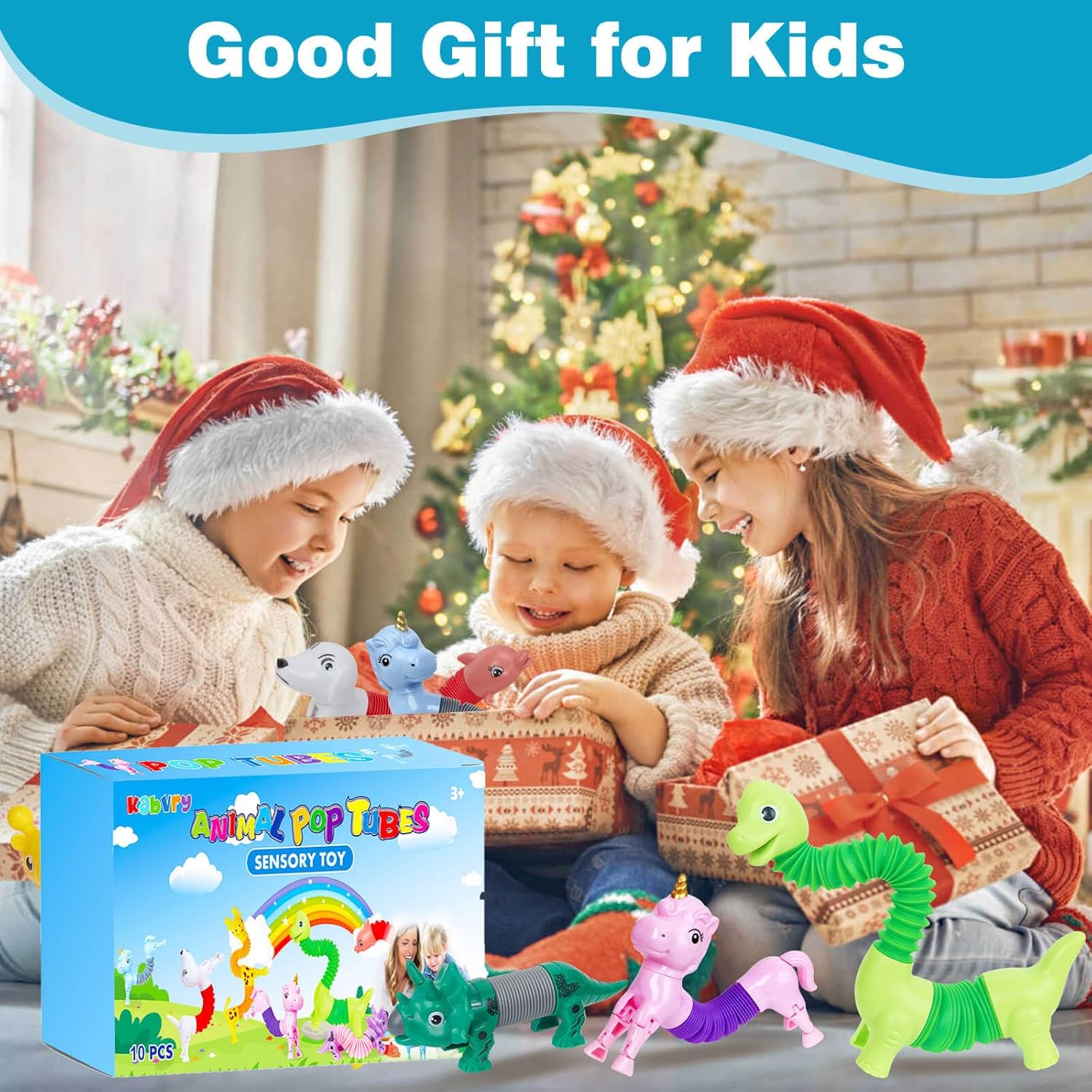 10 Pack Pop Tubes,Dog pop Tubes, Animal pop Tubes Fidget Toys,Sensory Tubes Fidget Toys for Kids,Toddler Sensory Toys,Fidget Tubes Party Favors,School Reward,Gift for Kids(10 Pcs, Classic Style)