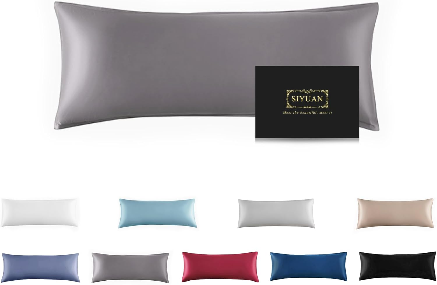 Mulberry Silk Pillowcase for Hair and Skin,Cooling Silk Pillow Case with Hidden Zipper,Allergen Proof Dual Sides Soft Breathable Smooth Silk Pillow Cover for Women (Dark Gray, Body)