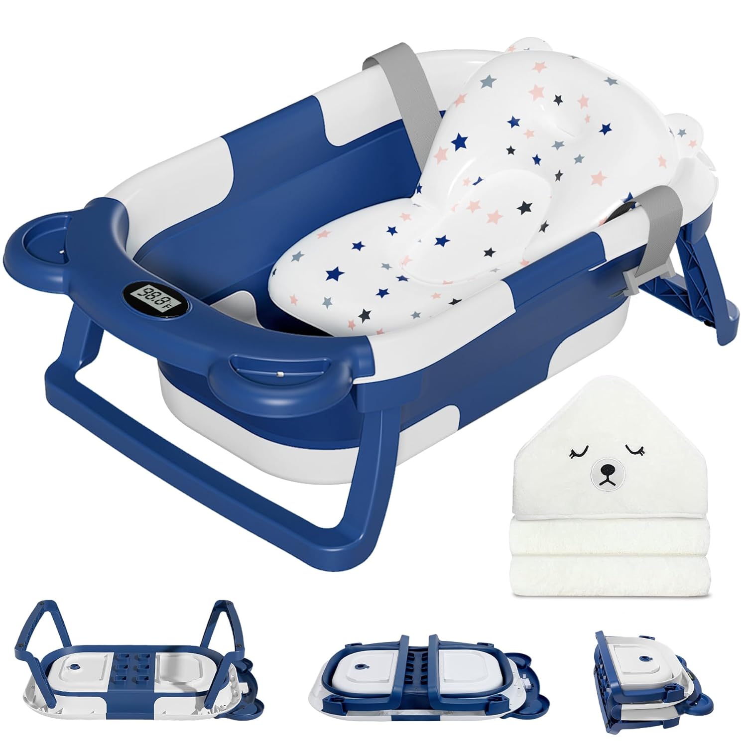 - 【Unmissable Free Premium Gifts】The collapsible bathtub is designed to accompany your baby from newborn to toddler, featuring a Floating Cushion suitable for ages 0 to 12 months and featuring a Cotton Net suitable for ages 12 to 24 months. This cushion is thoughtfully designed to emulate the womb, offering gentle support for your baby's spinal development.