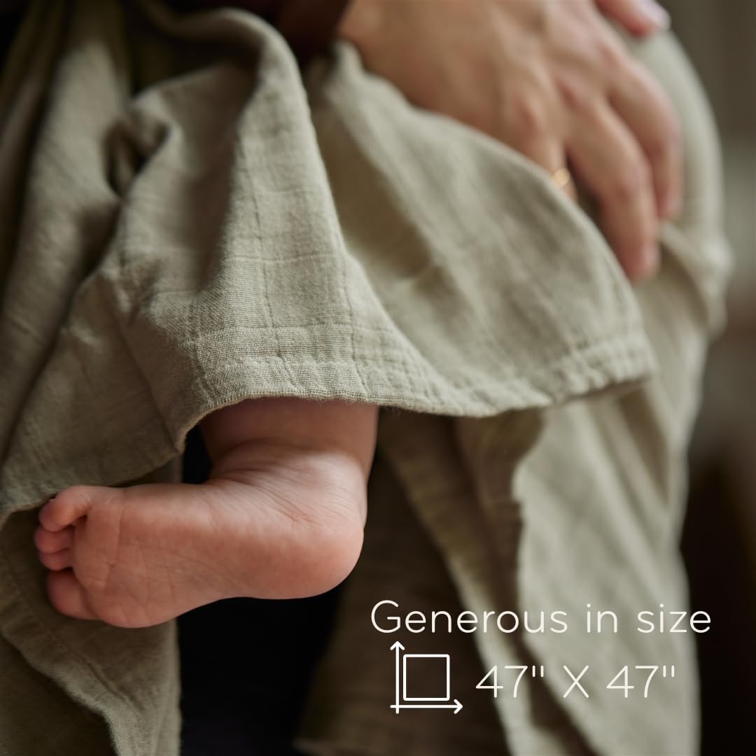 Swaddle - 100% Organic Cotton - Muslin Swaddle Blankets for Newborn, 47" x 47" (Sage Green)