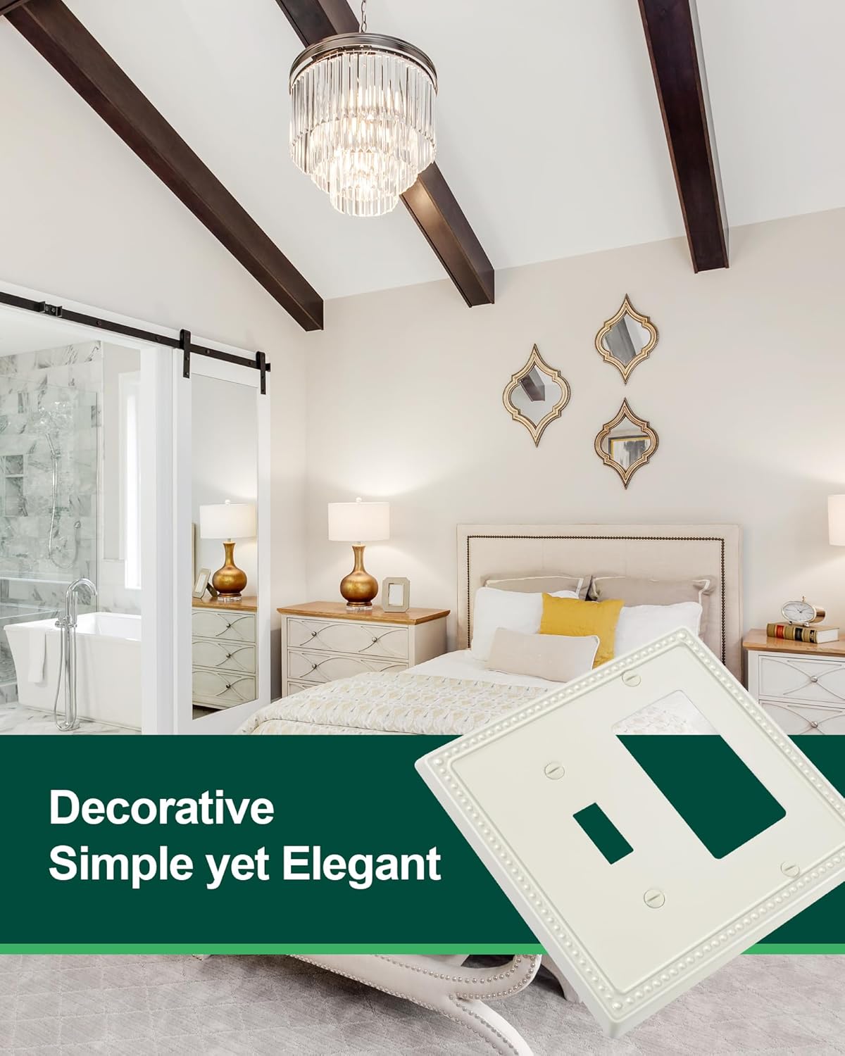 - Durable & Long-lasting - Constructed from high-quality metal, our light almond metal wall plate is built to last. It is resistant to impact, tarnishing, and corrosion, ensuring its durability and longevity. Rest assured that this Combo Toggle/Decorator switch plate covers will remain an attractive addition to your home for years to come.