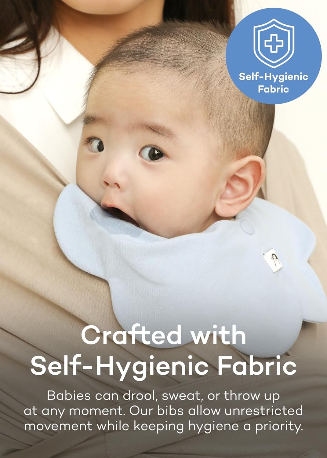 • Functional fabric: With fast absorption and drying, both drool and sweat evaporate quickly. Also, it blocks 98.5% of harmful UV rays from the baby’s delicate skin.