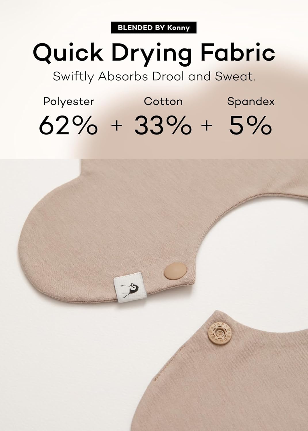 - Dribble pad and bib in one: This multi-purpose bib is made of the Konny Baby Carrier fabric that has a soft, yet firm feel with quick absorption / drying functions.