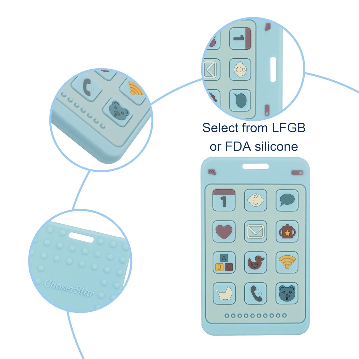 Soft Silicone Phone Shape Teether Boys Girls Baby Molar Teether Chew Toys, Teething Toy (Blue)