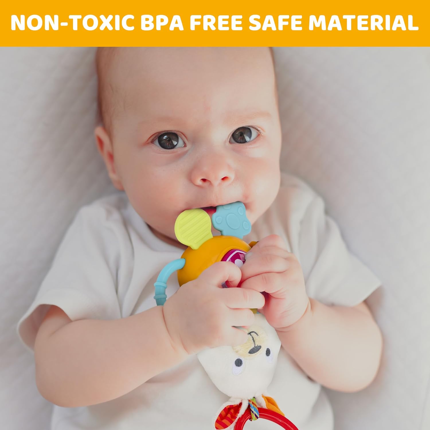 - MULTIFUNCTIONAL INFANT TOY β This rattle toy can be used as a rattle, teething toy or musical bunny toy that makes it a great gift for a baby shower, first birthday or any other occasion. As kids grow, theyβll move from exploring the toy to using it in imaginative play, that will provide hours of fun over the years