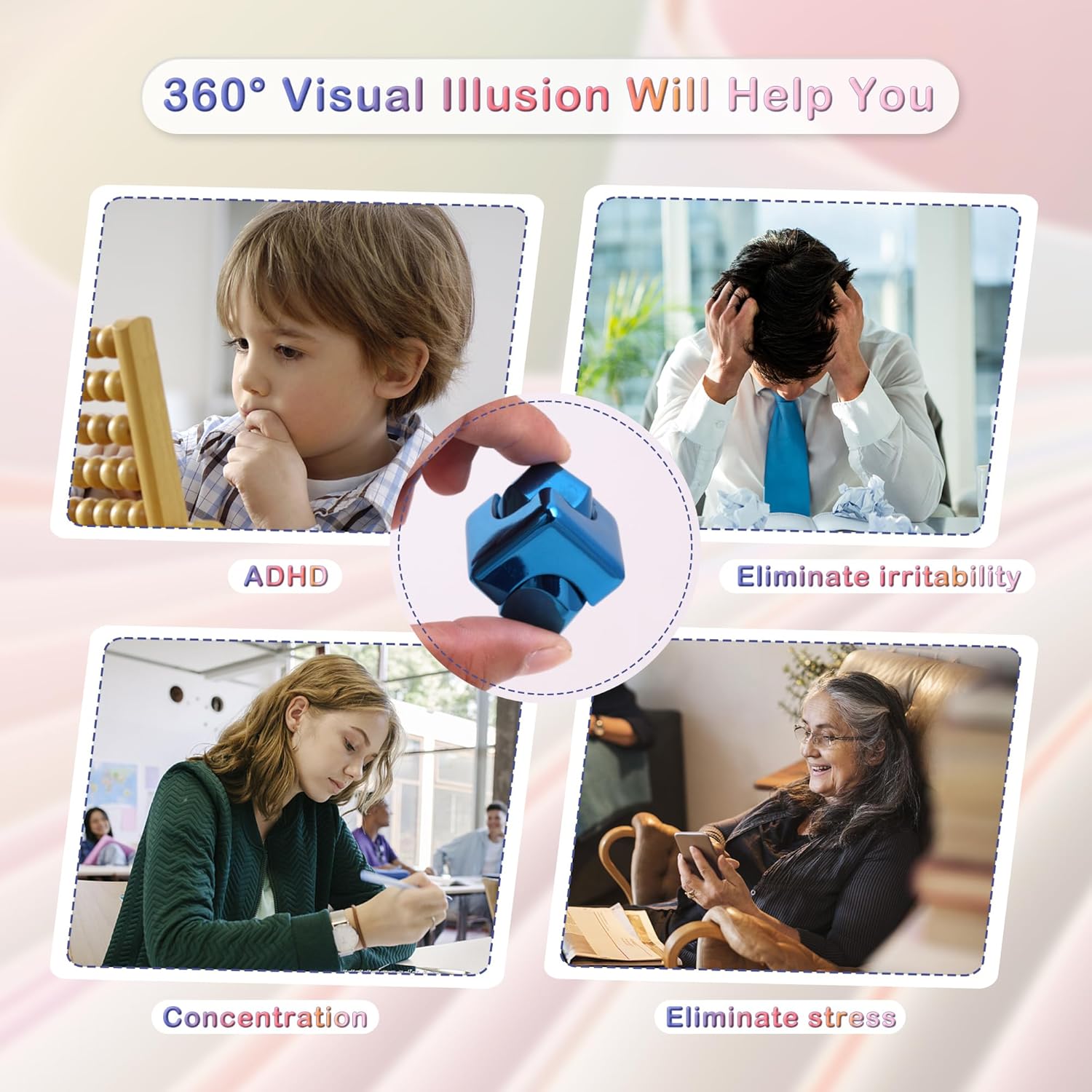 Desk Fidget Toys Spinner-Cube: Figetsss Cool Gadgets Metal Kinetic EDC-Toy with Silicone Base, ADHD Tools Cool Stuff Thing Office Toy Game Stress Relief Gift for Kid Children Teen Adult Christmas