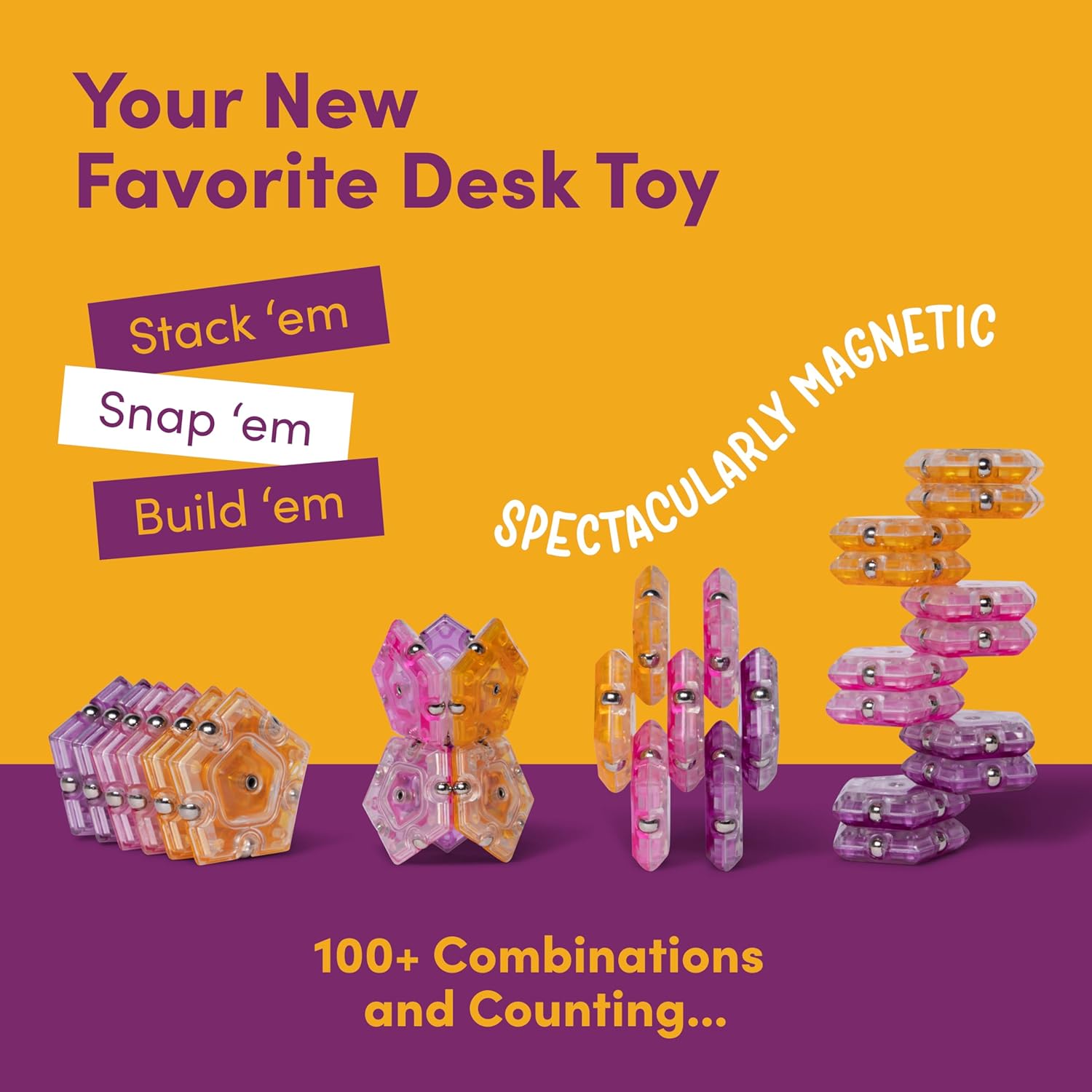 - STACKABLE, SHAKEABLE, SNAPPABLE, BUILDABLE: Use magnetic magic to build gravity defying structures then use your hand as a hammer to mess up your masterpiece. Have a jumble of pieces? Pile them into your palms and shake vigorously. They’ll magically self-align every time!