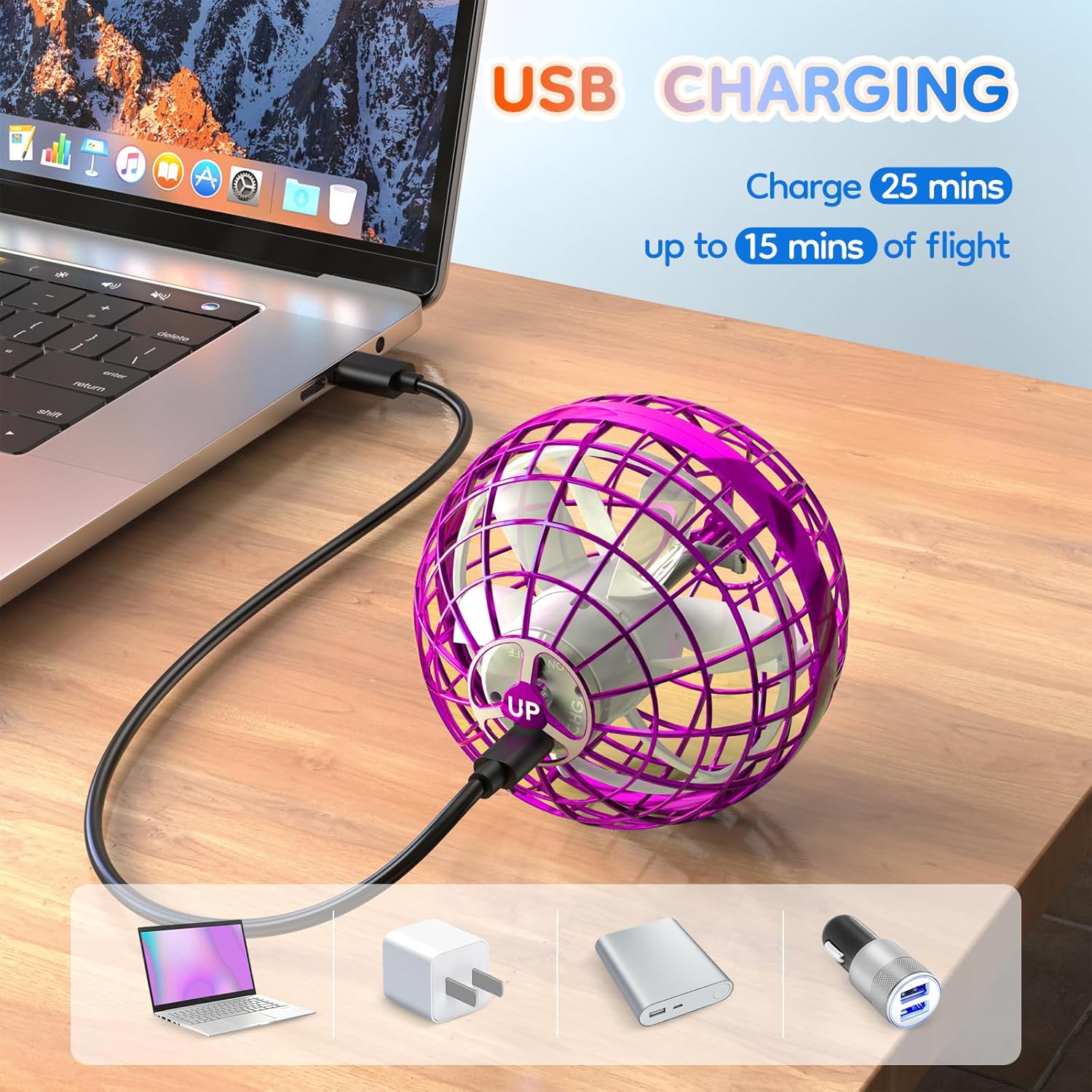 TOMZON Flying Orb Ball, Cool Toys for Boys Girls, Hover Ball Boomerang Fidget Spinner, Drone for Kids with Colorful Light Flying Spinner, A32 Purple