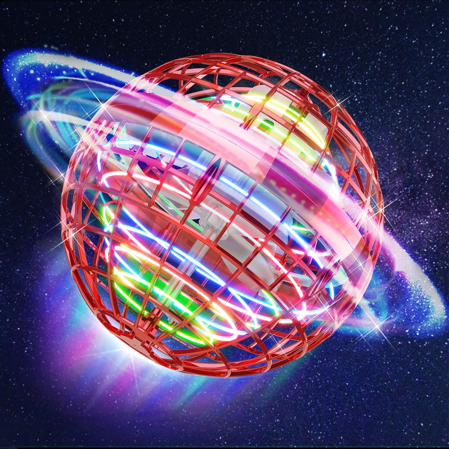 TOMZON Flying Orb Ball, Galaxy Ball Cool Toys for Boys Girls, Hover Ball Boomerang Fidget Spinner, Drone for Kids with Colorful Light Flying Spinner, A32 Red