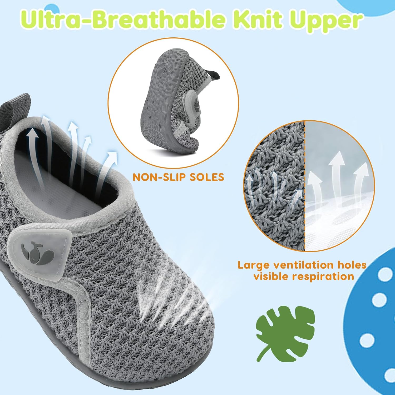 • Upper:Knitted Mesh Upper offers comfort and air permeability,has excellent breathability,moisture wicking function,and keep baby's feet dry and odorless.Super Soft,Breathable and Comfortable fit all the year