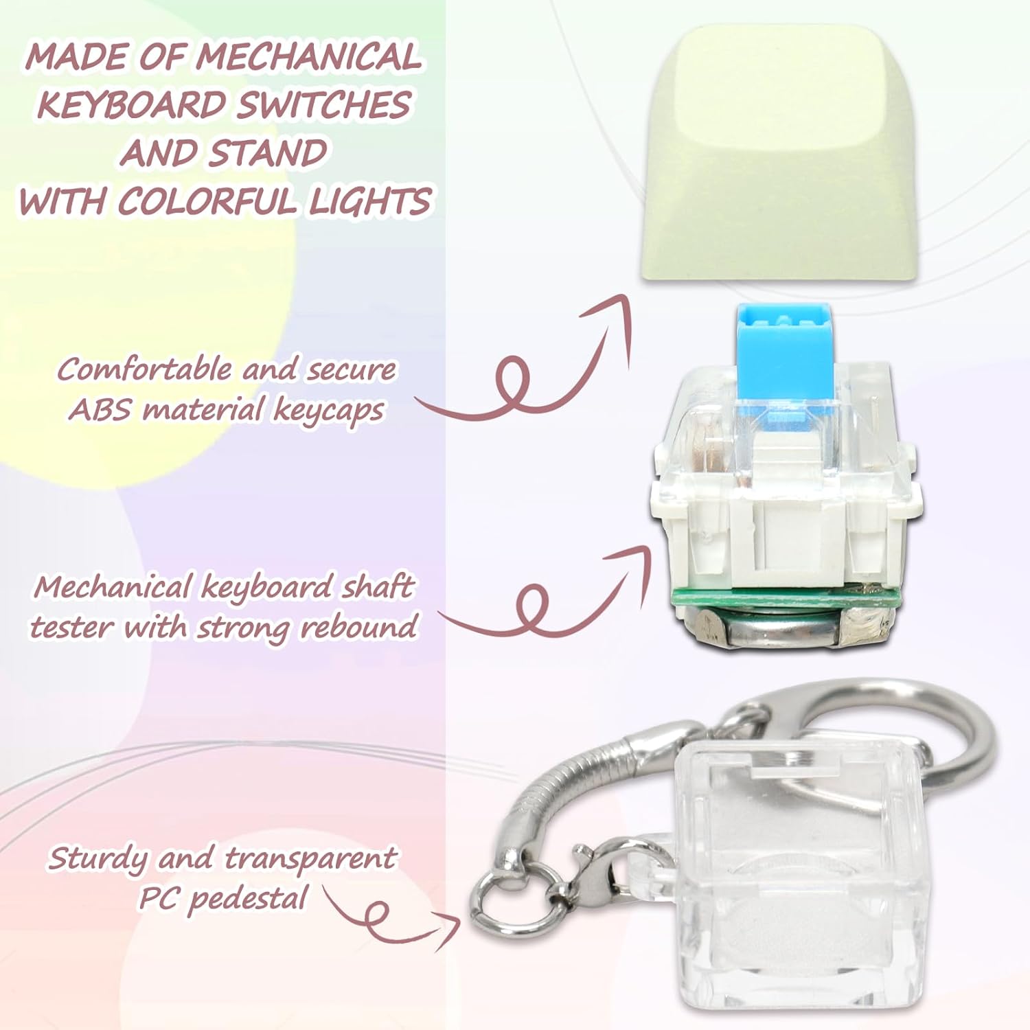 - Reliable Material: Crafted from high quality materials, this keyboard fidget keychain offers reliable performance. The key cap is made of ABS material for comfort and safety, while the pedestal is constructed from sturdy PC. The zinc alloy keychain ensuring that it's built to last for a long time. Plus, the matte keycap feels fantastic to the touch, providing endless hours of tactile enjoyment