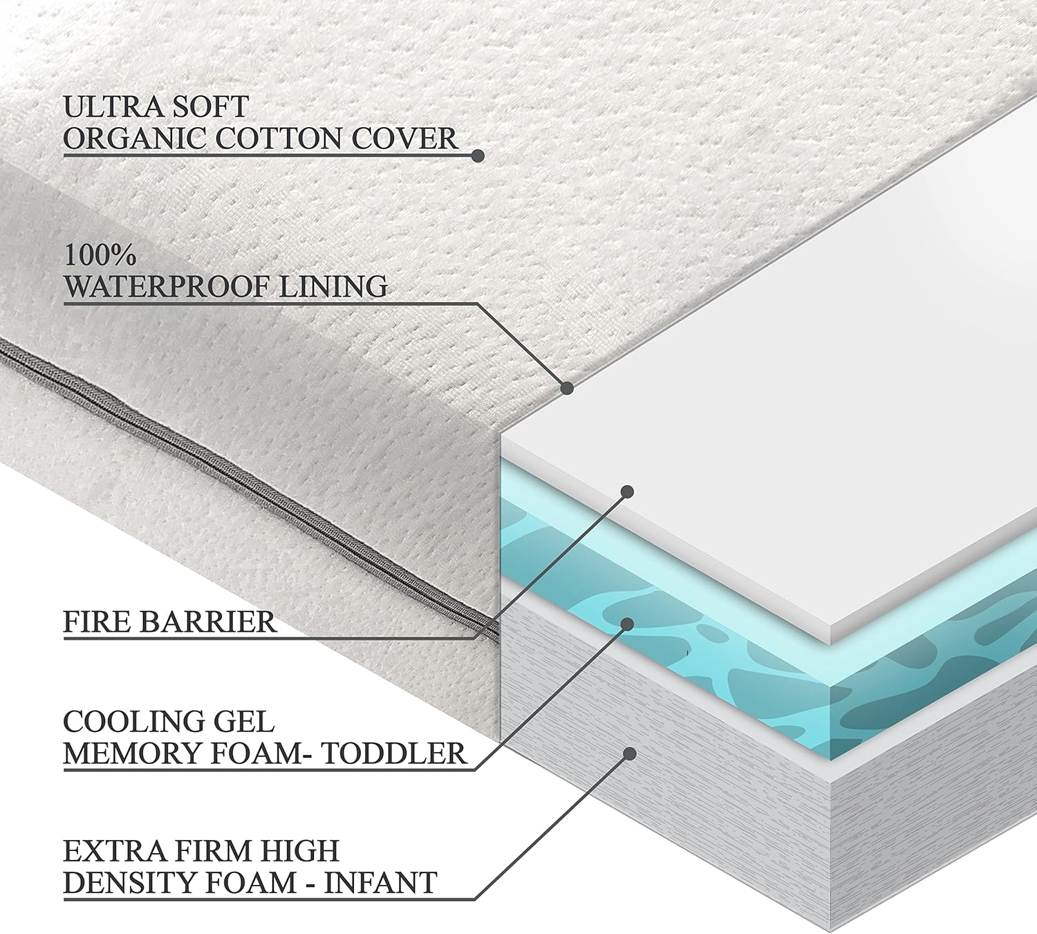 - THE MATTRESS THAT GROWS WITH THEM | Dual-Sided Baby Pad Features Ventilated, Breathable Dual Layers, Providing a Firm Surface for Newborns & Soft, Moldable Memory Cooling Foam Gel for Toddlers | Give Your Tot the Comfort, Safety & Support They Need for a Restful Night’s Sleep | Standard Crib Size 52”x27.5”x5.5”