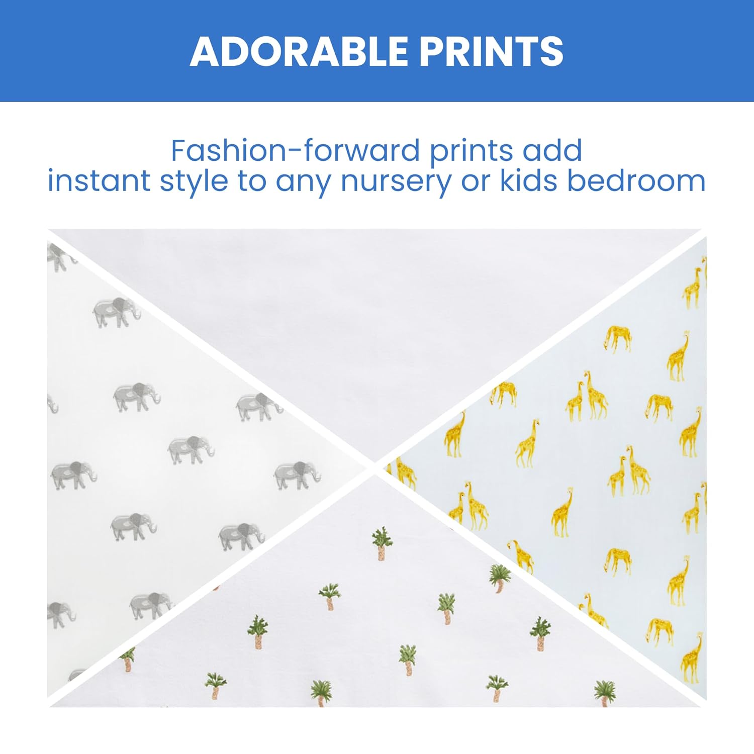 - ADORABLE PRINTS: Available in a number of stylish patterns for girls and boys | Fashion-forward prints will add instant style to any space | Each 4 pack contains coordinating prints that you and your baby will love