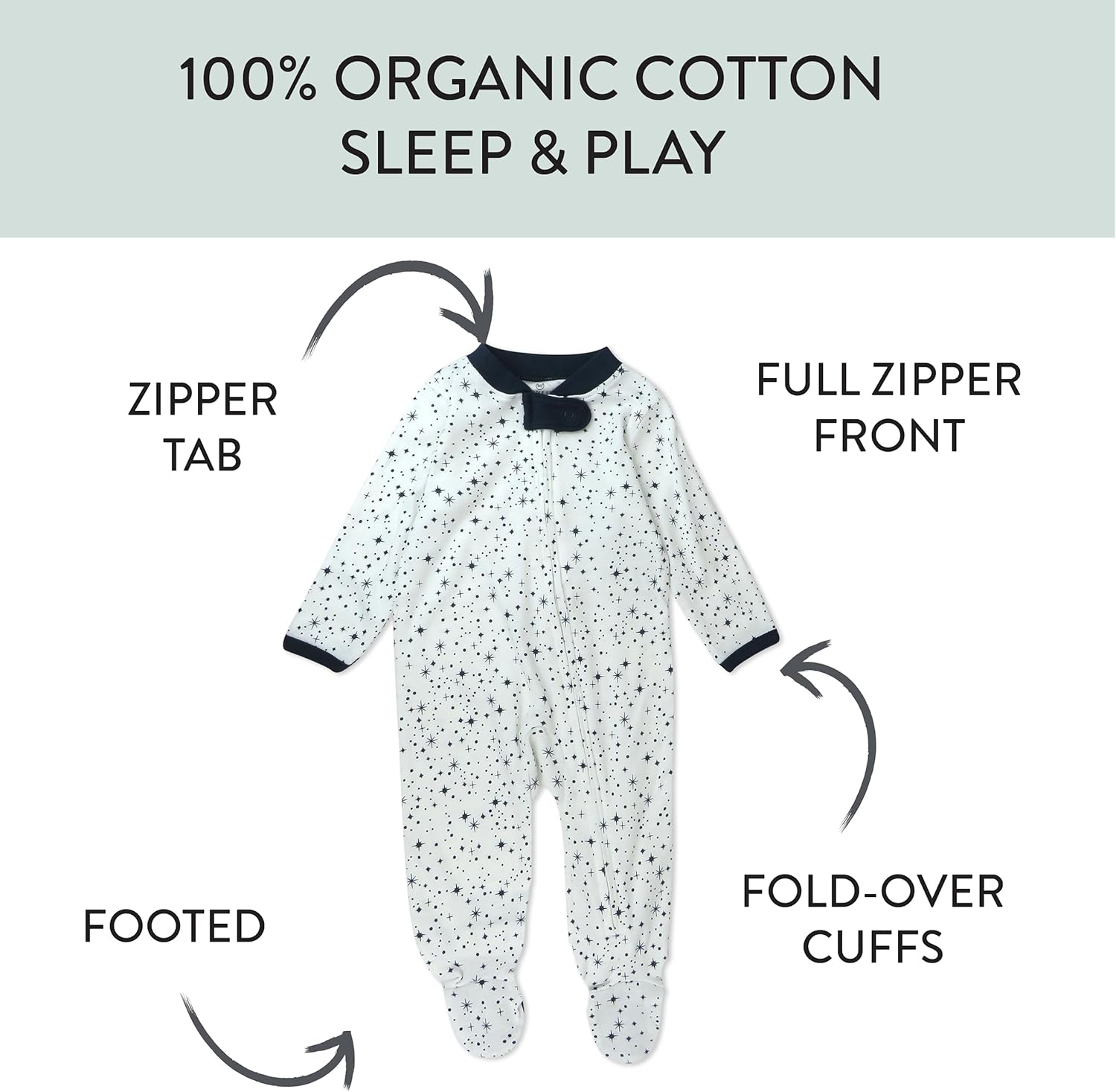HonestBaby Baby Sleep N' Play One-Piece Zip-Front Footed Organic Cotton Pajama Sleeper