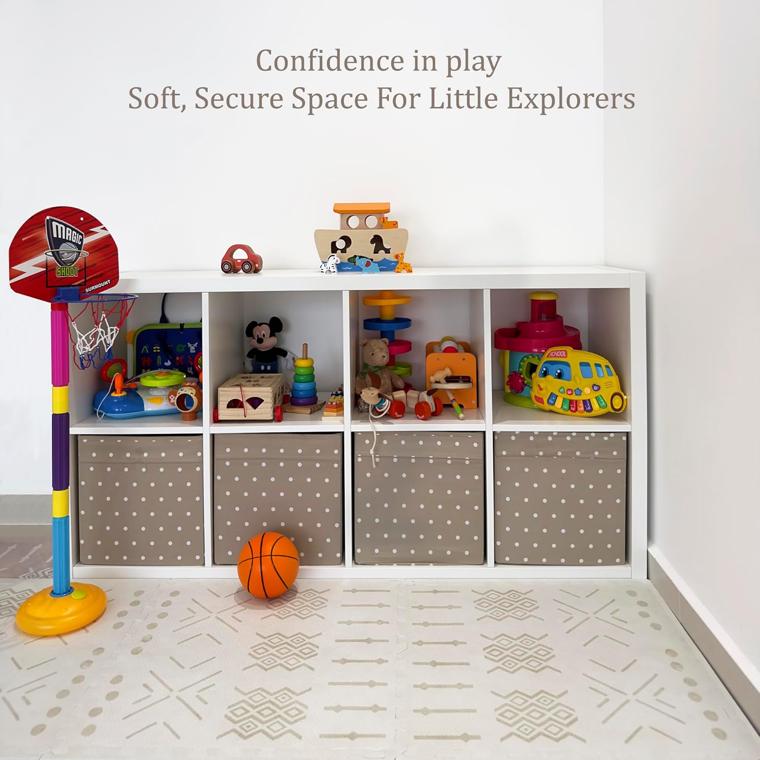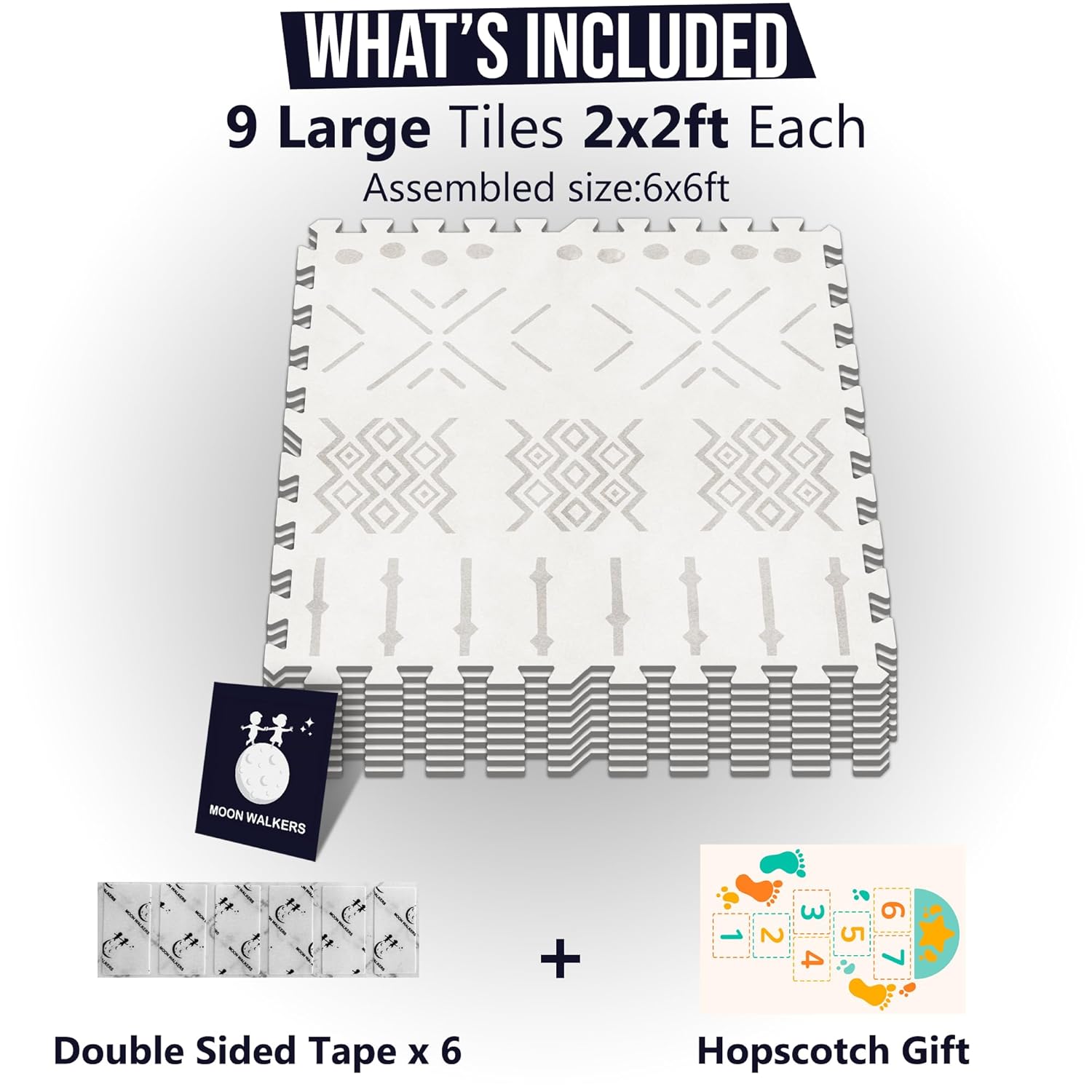 MOON WALKERS Stylish Boho Baby Play Mats for Floor,(6x6ft) Play Mat for Babies and Toddlers, Non-Toxic, Soft, Thick, Tummy Time Mat for Crawling (Extra Large 9 Tiles, Ivory Aztec)