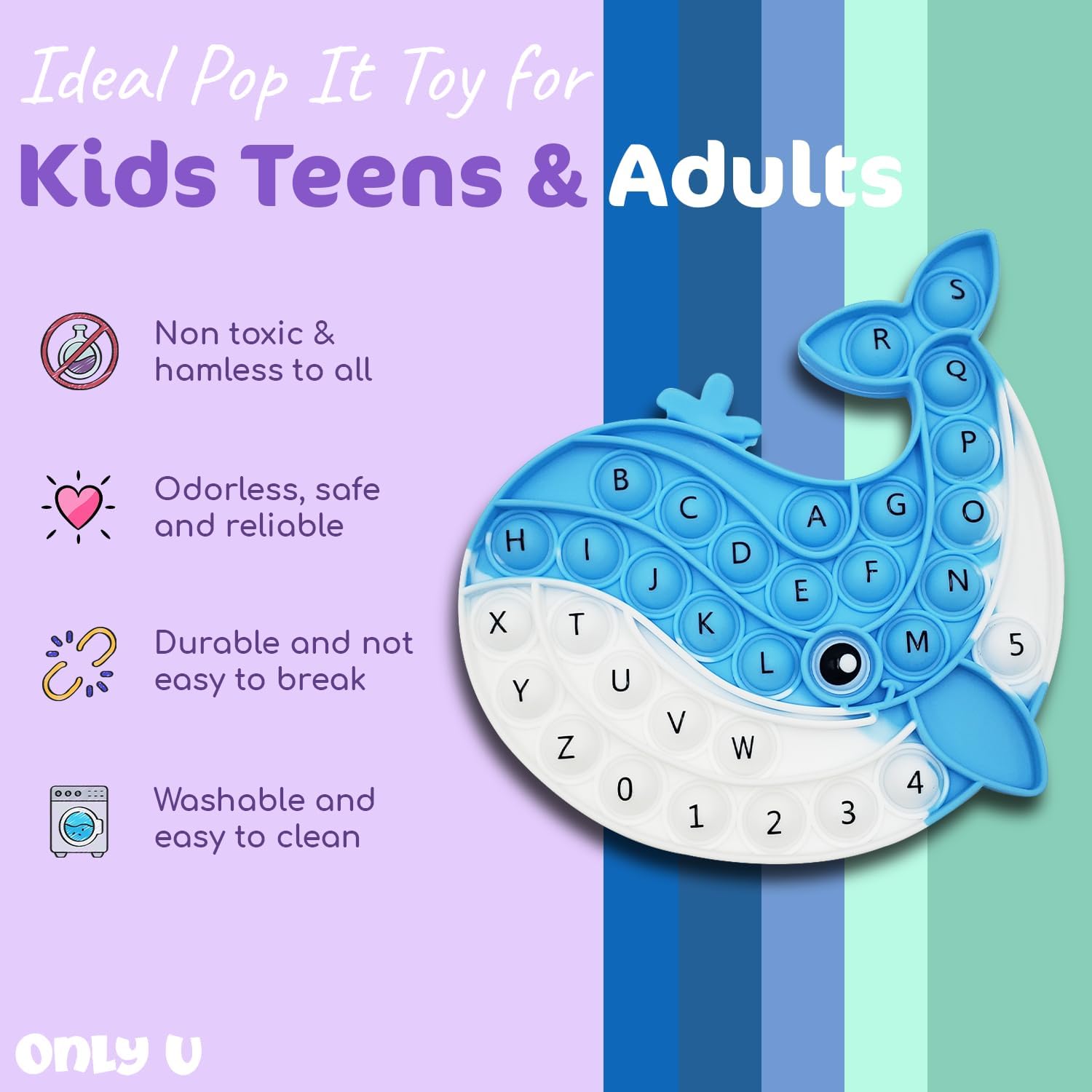 - Only U 3 piece Marine Animal Toy Set is made of high-quality food-grade silicone, flexible and sturdy, non-toxic, BPA-free with no smell. It can be an intelligent game to play, cup pad, and also a push pop bubble fidget sensory toy set that serves as teaching aids for children to distinguish different forms of marine animals. Additionally, the set includes the ABCs printed on the pops, making it an even more versatile educational tool.