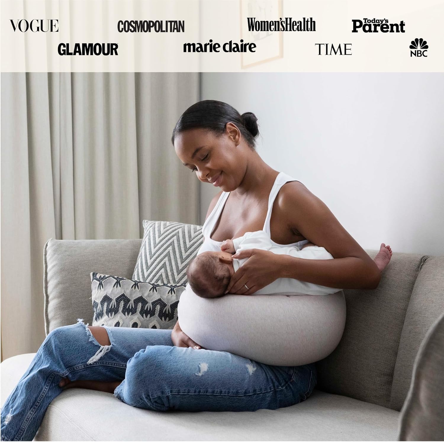 - ADJUSTABLE AND FITS ALL BODY SIZES — extra long tie-around design allows you to secure the pillow at the level of the breast to ensure a comfortable latch for mom and relaxed feeding for baby; extra-long ties make the pillow suitable for all body sizes