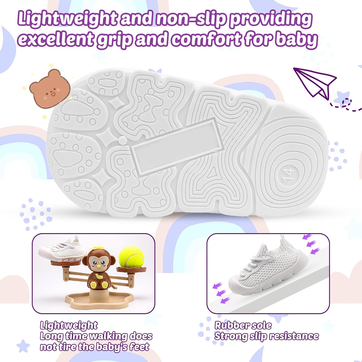 • Discover Toddler Shoes that elevate playtime. Breathable mesh knit keeps little feet refreshed, while a touch of white at the heel adds a stylish sparkle. Each step blends comfort with a dash of panache, making every playground run a mini fashion statement. Where comfort meets couture for the smallest explorers.