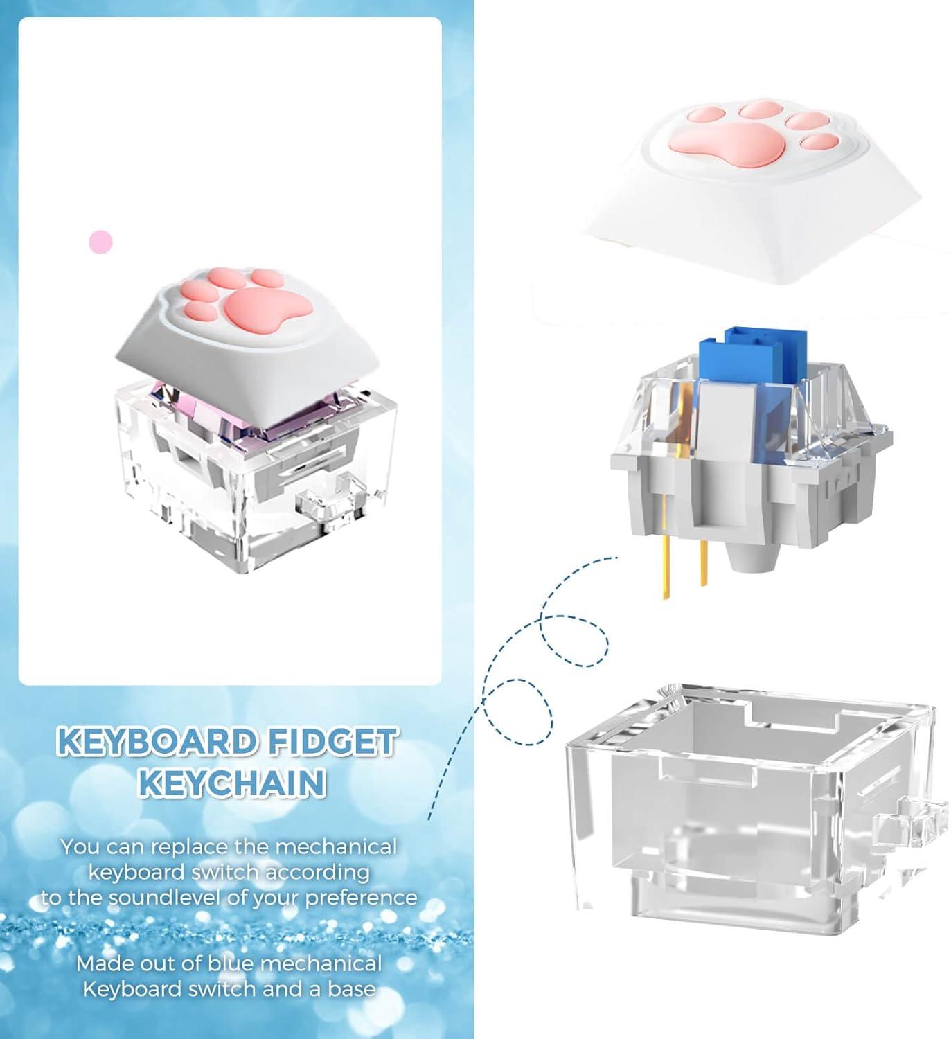 - Novelty and Funny: Cute Cat's paw Fidget Keyboard Keychain