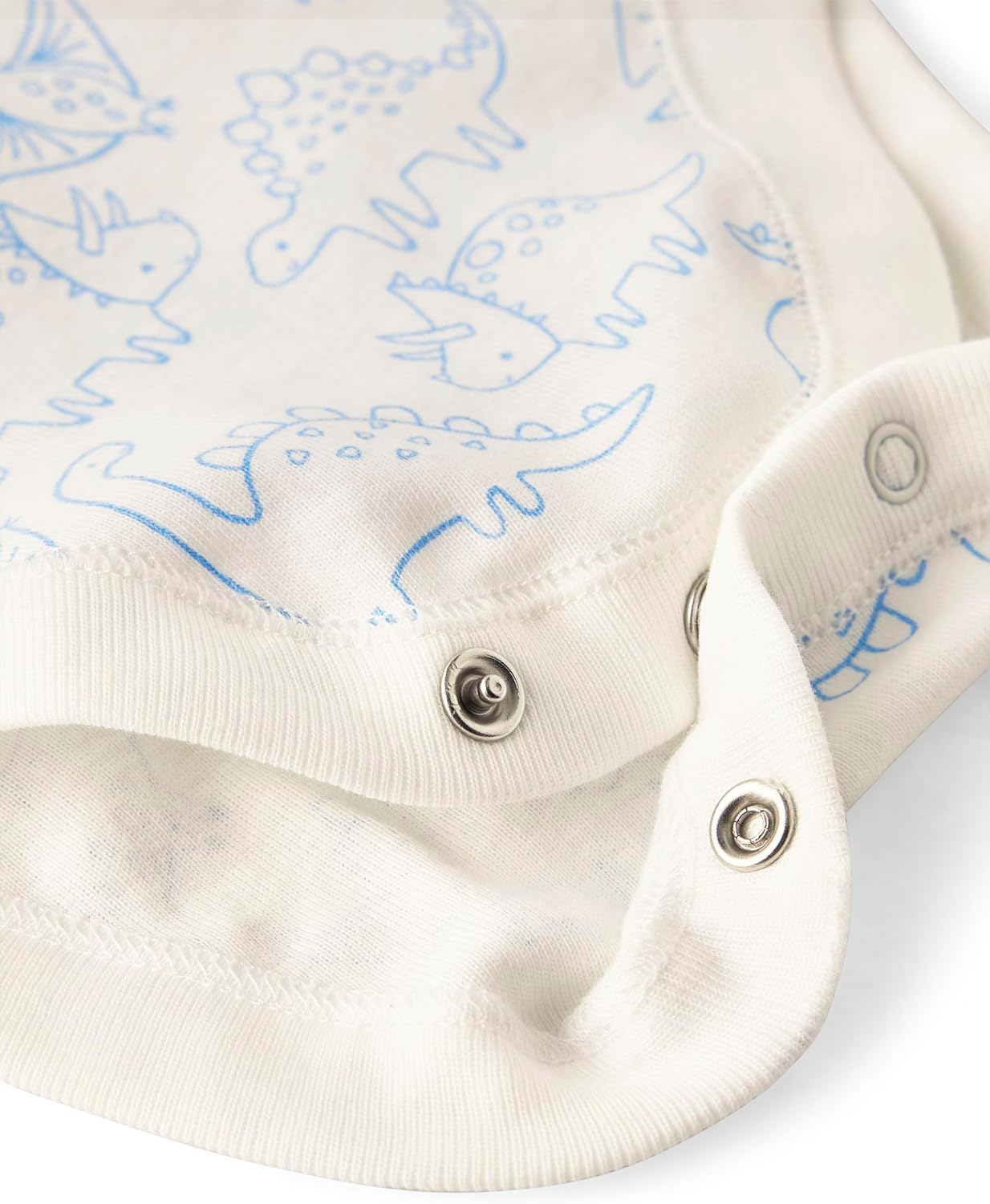 - MULTIPACK — includes short sleeve bodysuit with allover stripes, short sleeve solid bodysuit and short sleeve bodysuit with allover dino print