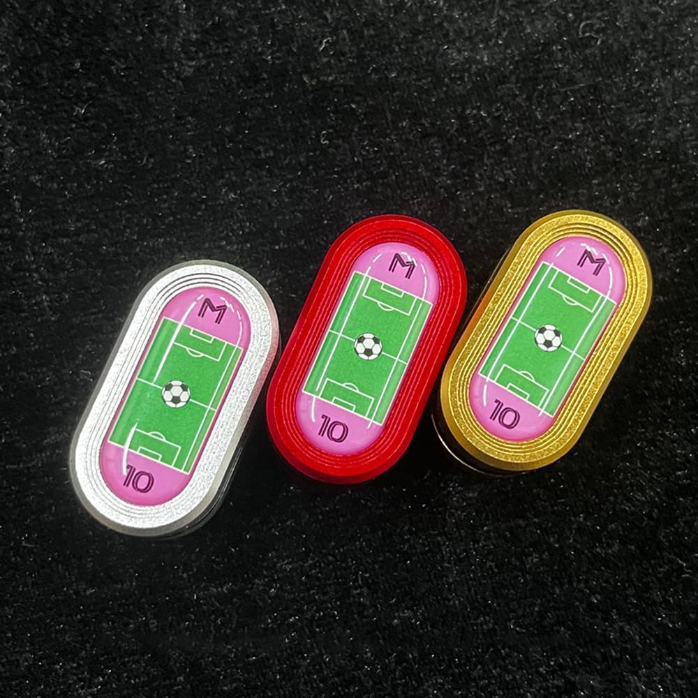 - 【Excellent Fidget Slider Toy】- These fidgets slider toys is entirely made of Aluminum Alloy. The front and back of the slider feature a soccer style pattern and covered with clear resin. This enhances the friction of the push while clearly displaying the internal pattern. The pattern features the jersey number of current soccer legend #10. Every detail of the slider has been precisely machined, and the surface treatment is delicate and smooth, making it more comfortable to hold.