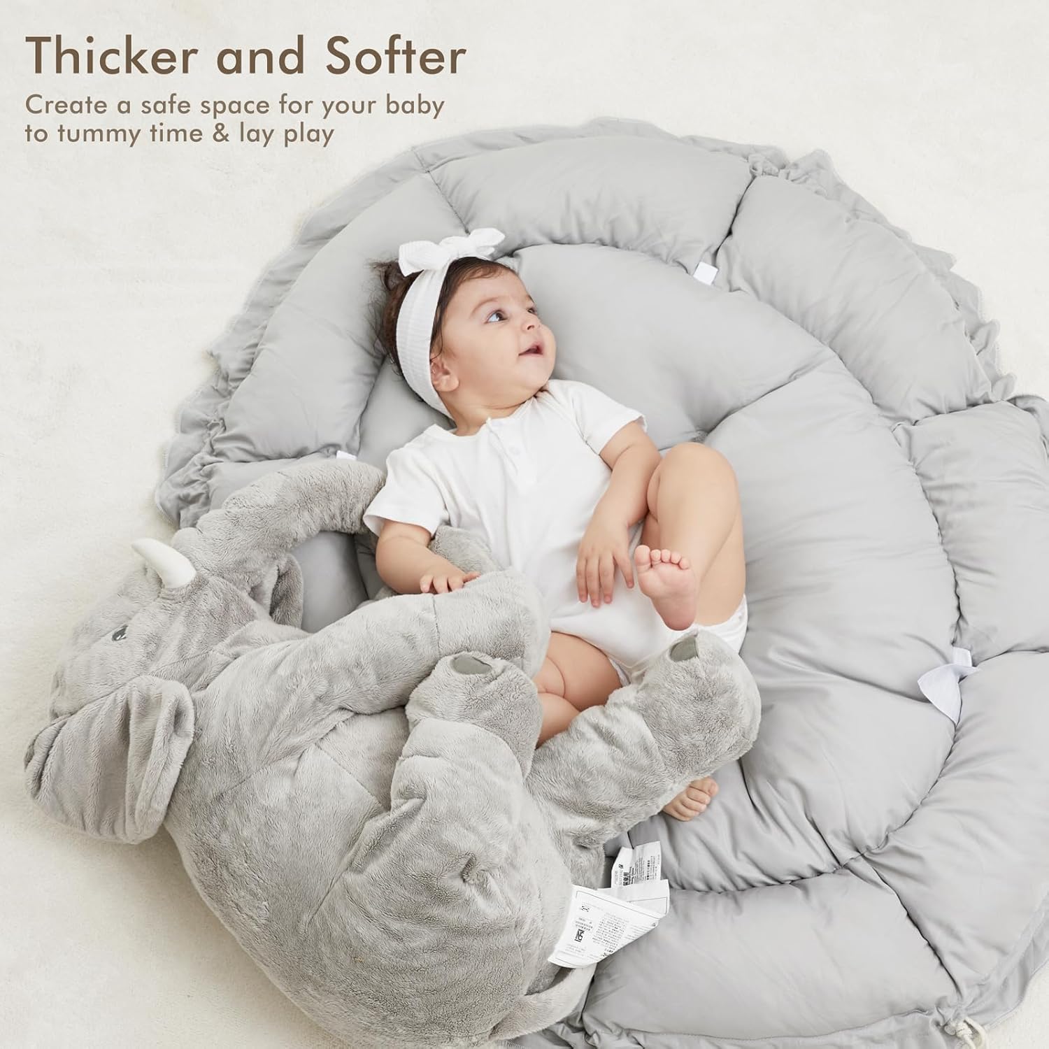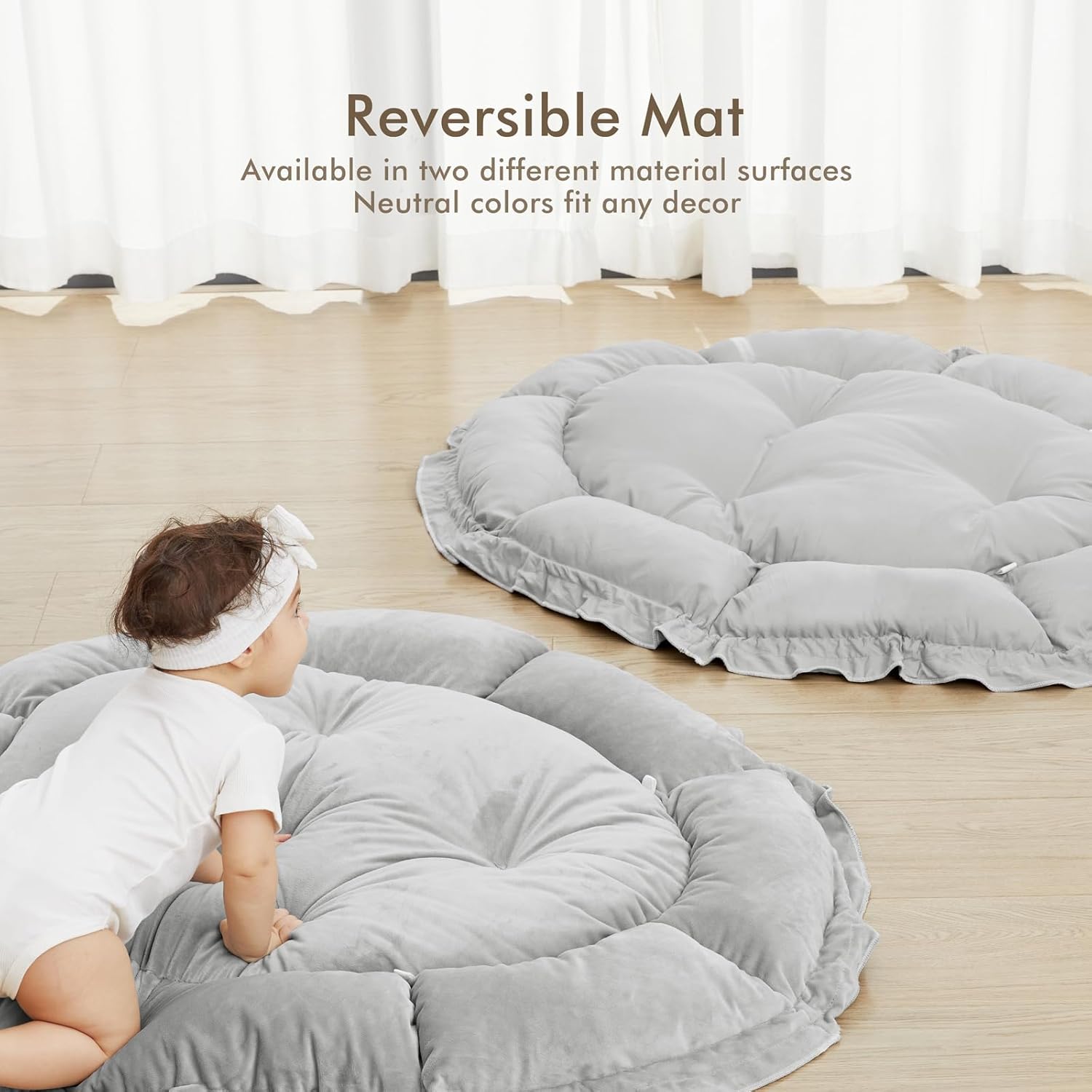 - THICKER & SOFTER: The reversible play mat crafted from premium plush material, offers a fantastic amount of cushion. Its neutral color scheme blends in with your home’s aesthetic so you can keep it out even after playtime is over.