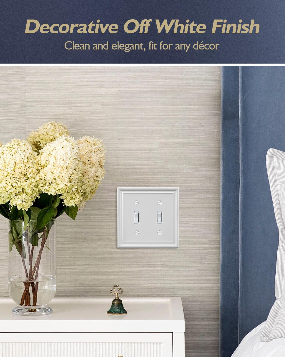 2-Pack Double Toggle Light Switch Cover Plate, Metal Switch Plate Covers, Off White Wall Plate Covers, 4.96''*4.88'', Midsize