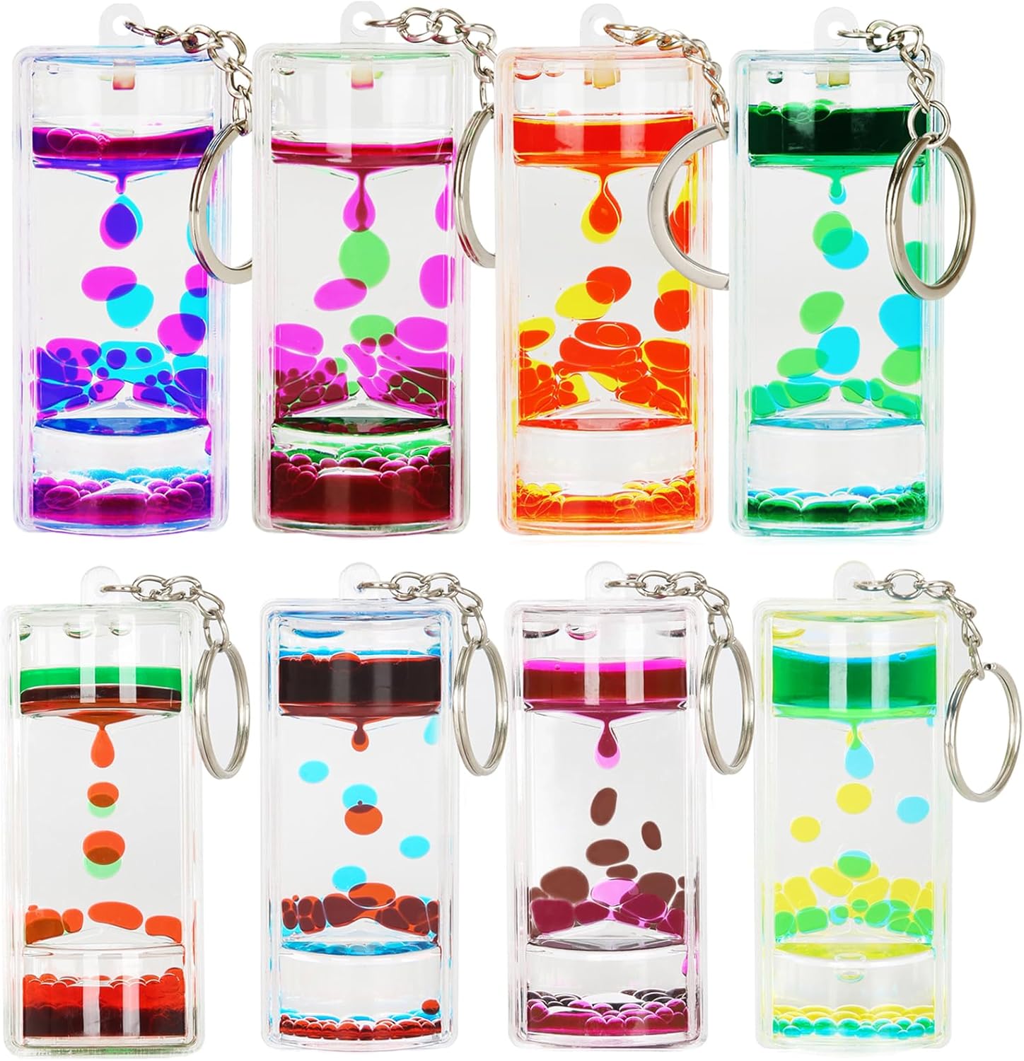 Liquid Motion Bubbler Key Chain Pack of 8 Great Desktop Colorful Hourglass Liquid Bubbler Small Calming Relaxing Toys (Rainbow series, Pack of 8)