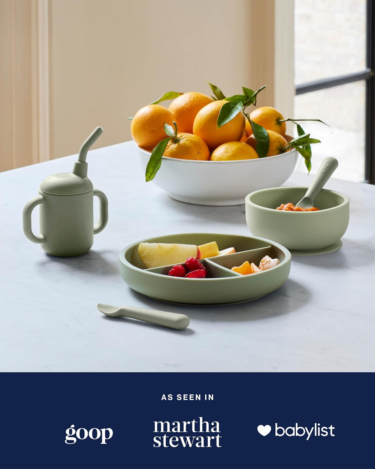 Lalo Suction Plates - 2 Pack, 100% Silicone Non-Toxic BPA-Free Baby Plates with Suction Base To Prevent Accidental Tip-Overs - Suction Plates for Toddlers With Three Divided Sections - Sage