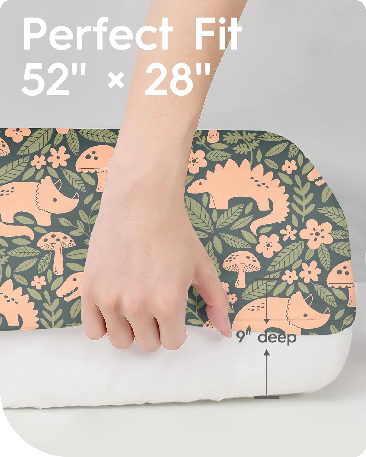 - 360° EFFORTLESSLY FITS: TotBasic fitted crib sheets effortlessly fit standard crib mattresses, measuring 28" x 52", with a flexible depth of up to 9" deep pockets. The premium elastic along the entire bottom edge ensures the sheet cover stays firmly and snugly in place, eliminating worries of it accidentally slipping off over your baby's head.