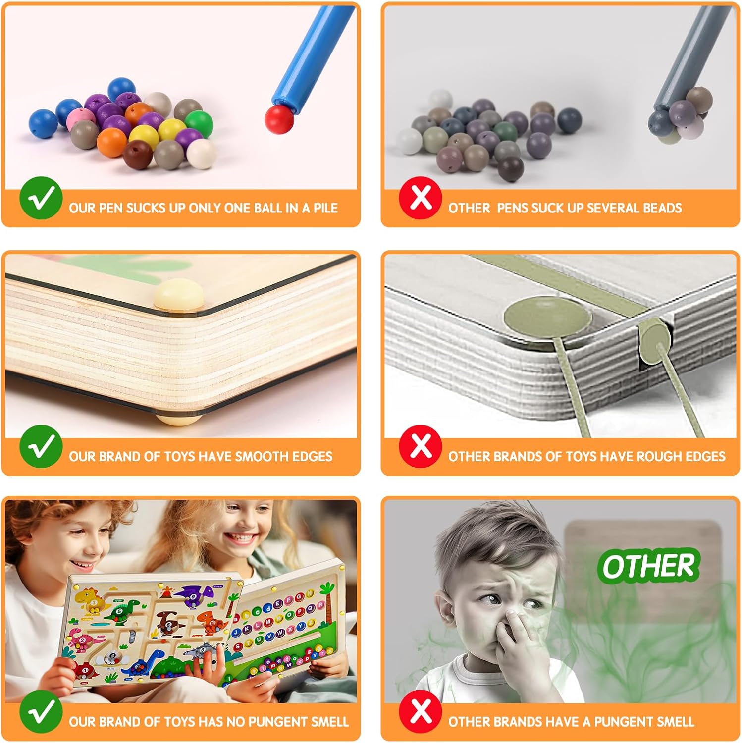 - High-quality Materials: Montessori education double-sided wooden boards are made of high-quality wood, non-toxic and harmless, no odor. This magnetic maze Montessori toy is perfect for kids aged 3 and up. The edges of the board have been strictly polished and are smooth and flat, which will not cause any harm to children's little hands.The smooth and transparent board firmly fixes the small toy beads inside the board, These magnetic balls won't fall apart.