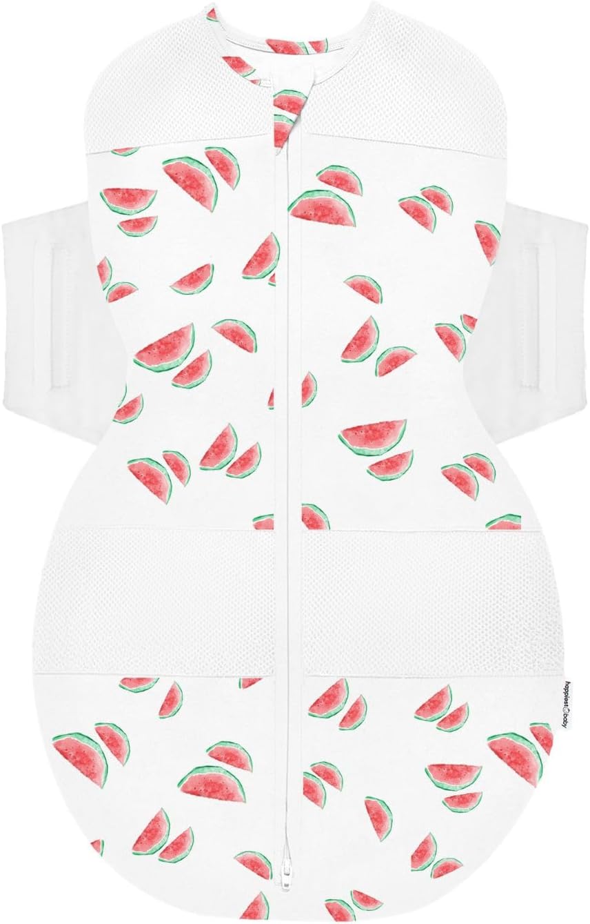 Happiest Baby SNOO Sleep Sack - 100% Organic Cotton Baby Swaddle Blanket - Doctor Designed Promotes Healthy Hip Development (Ivory Watermelons, Small)