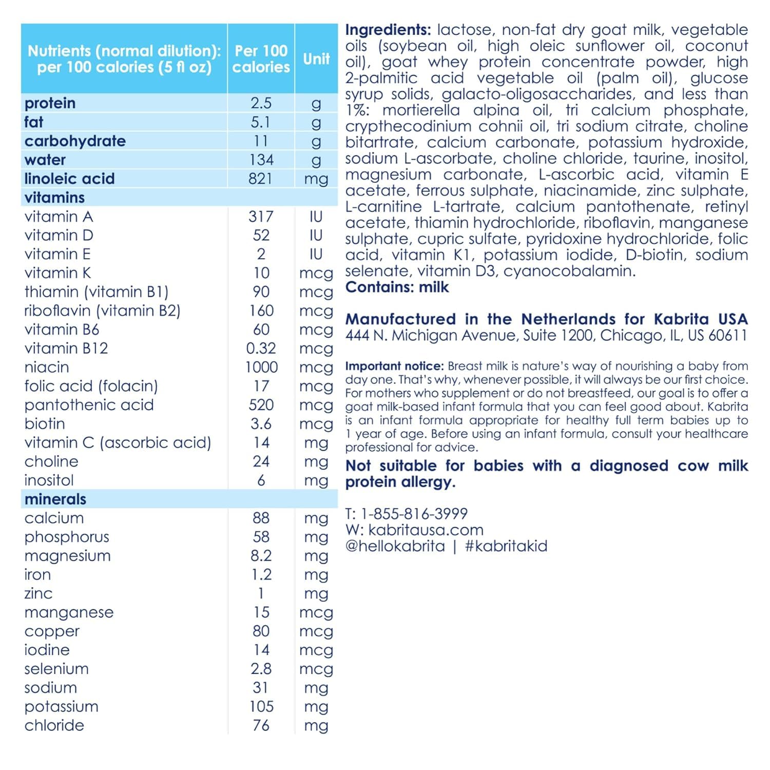 - Item Form : Kabrita Goat Milk-Based Infant Formula – 28oz – Pack of 2 – Natural, Gentle Baby Formula – European, Non-GMO – Ages 0-12 MonthsKabrita Goat Milk-Based Infant Formula – 28oz – Pack of 2 – Natural, Gentle Baby Formula – European, Non-GMO – Ages 0-12 Months See more