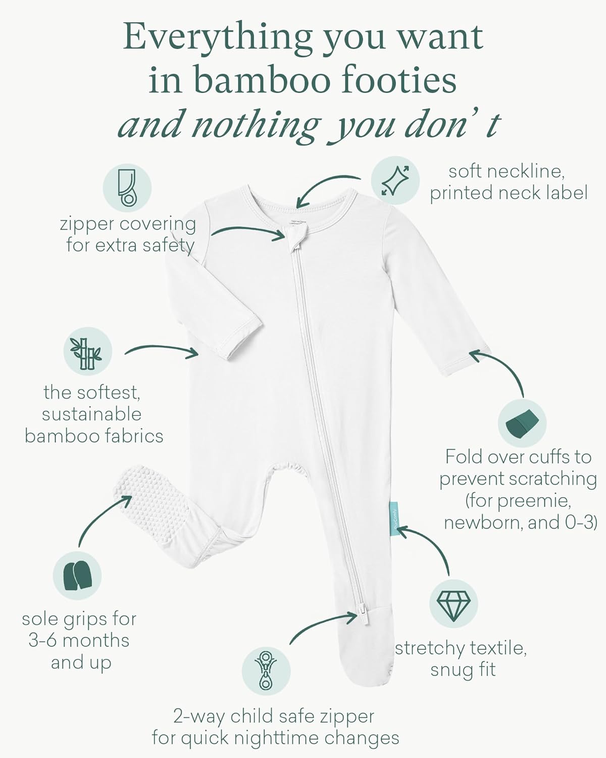 Baby Zipper Footie Pajamas, Supersoft Bamboo Rayon Baby Footed Pjs Boy Girl 0-3-6-9-18-24 Month Coverall Sleepers