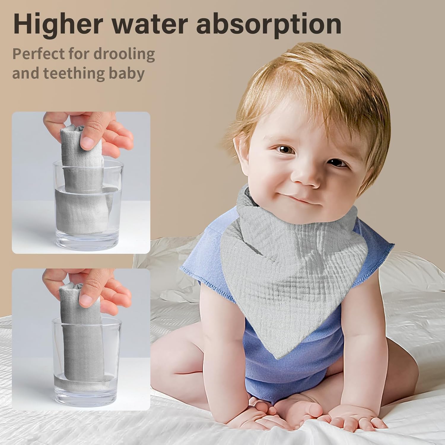 - 【Soft & Cozy】: The Nisxabebe bandana bibs front are crafted from muslin,known for its incredible softness.Thanks to muslin's superb breathability, babies will feel incredibly comfortable while wearing it. The soft fluffy plush backing boosts the bib's absorbency.