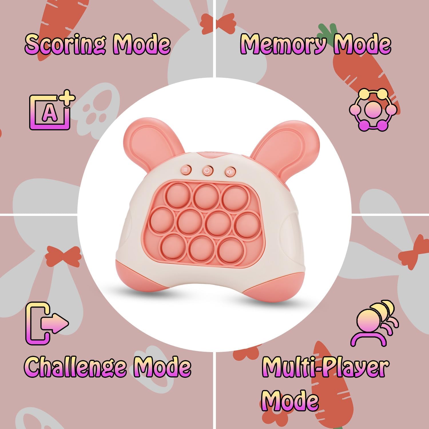 Fast Push Game, Bunny Ear Handheld Speed Push Bubble Game Console, Light up Pop Game Sensory Fidget Toys for Kids, Autism Sensory Toys,Birthday Easter Toy for Boys Girls Adults(Pink)
