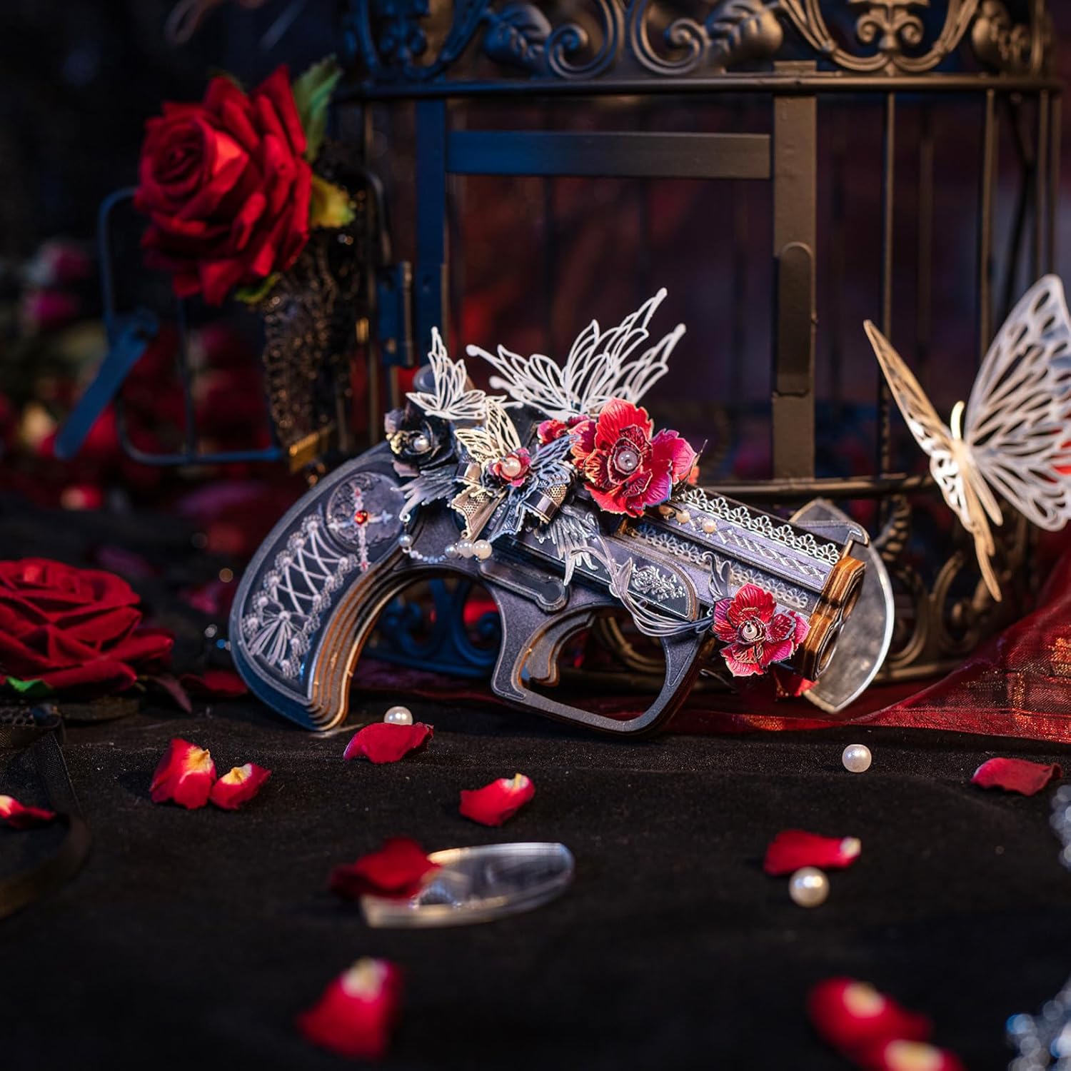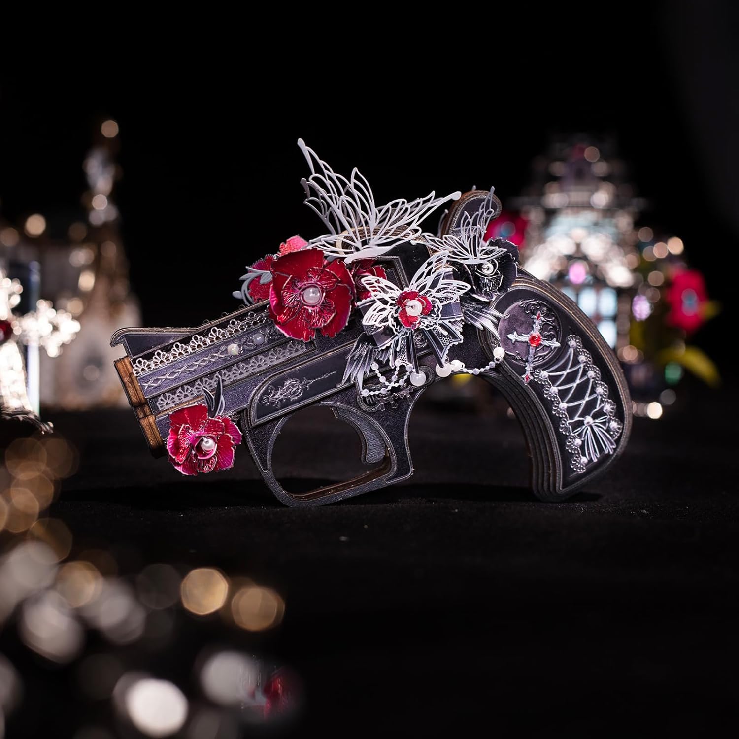 MU 3D Wooden Puzzle for Adult Derringer-Rose of The Night Defender Wood Gun Toy Building, AK47 Revolver Rubber Band Gun Pistol Toys 3D Metal Puzzles Model Kits, DIY Kits Hobbies Xmas Birthday Gift