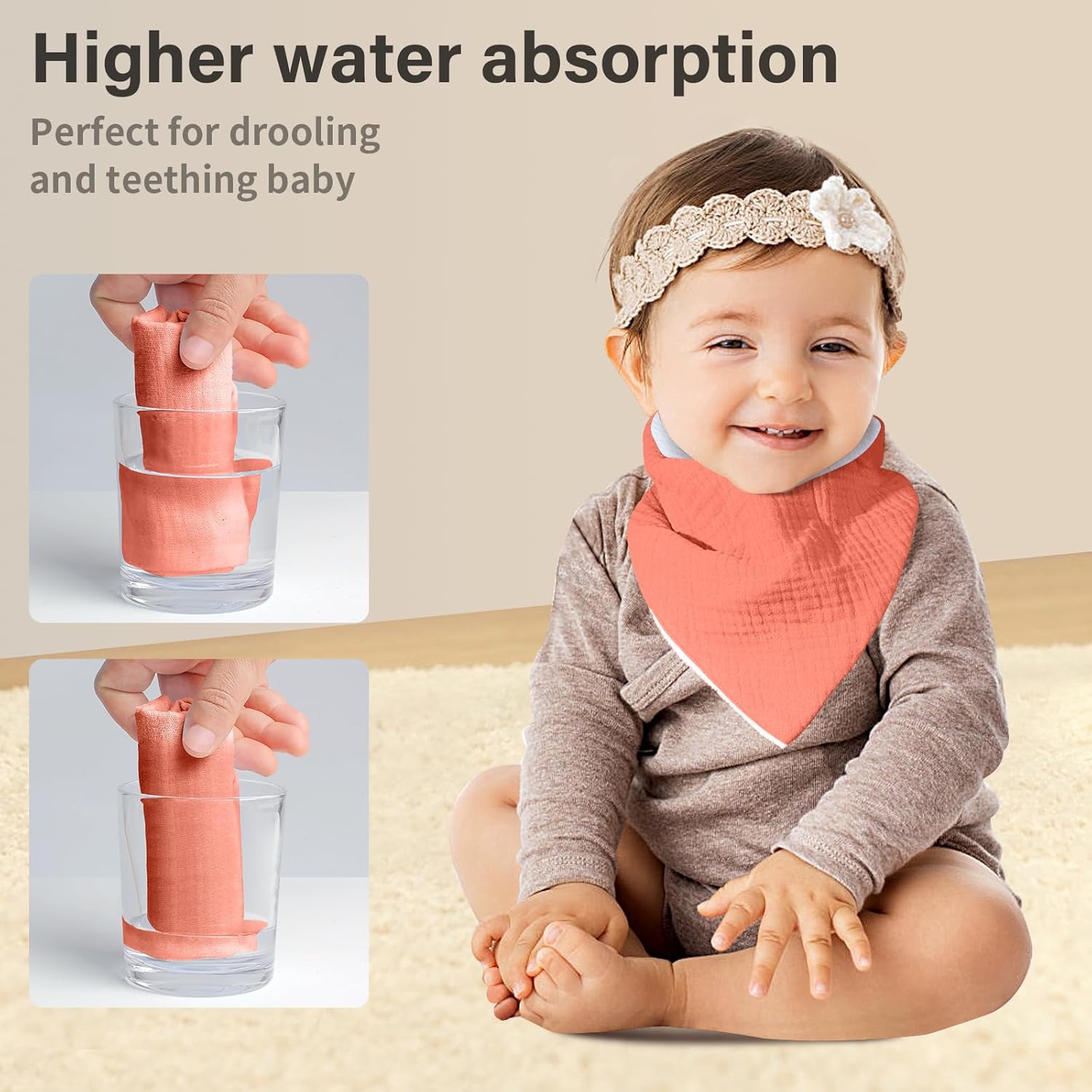 Muslin Baby Bibs,Soft Triangular Baby Bandana Drool Bibs for Baby Boy Girl,Solid Colors Bib for Drooling Teething