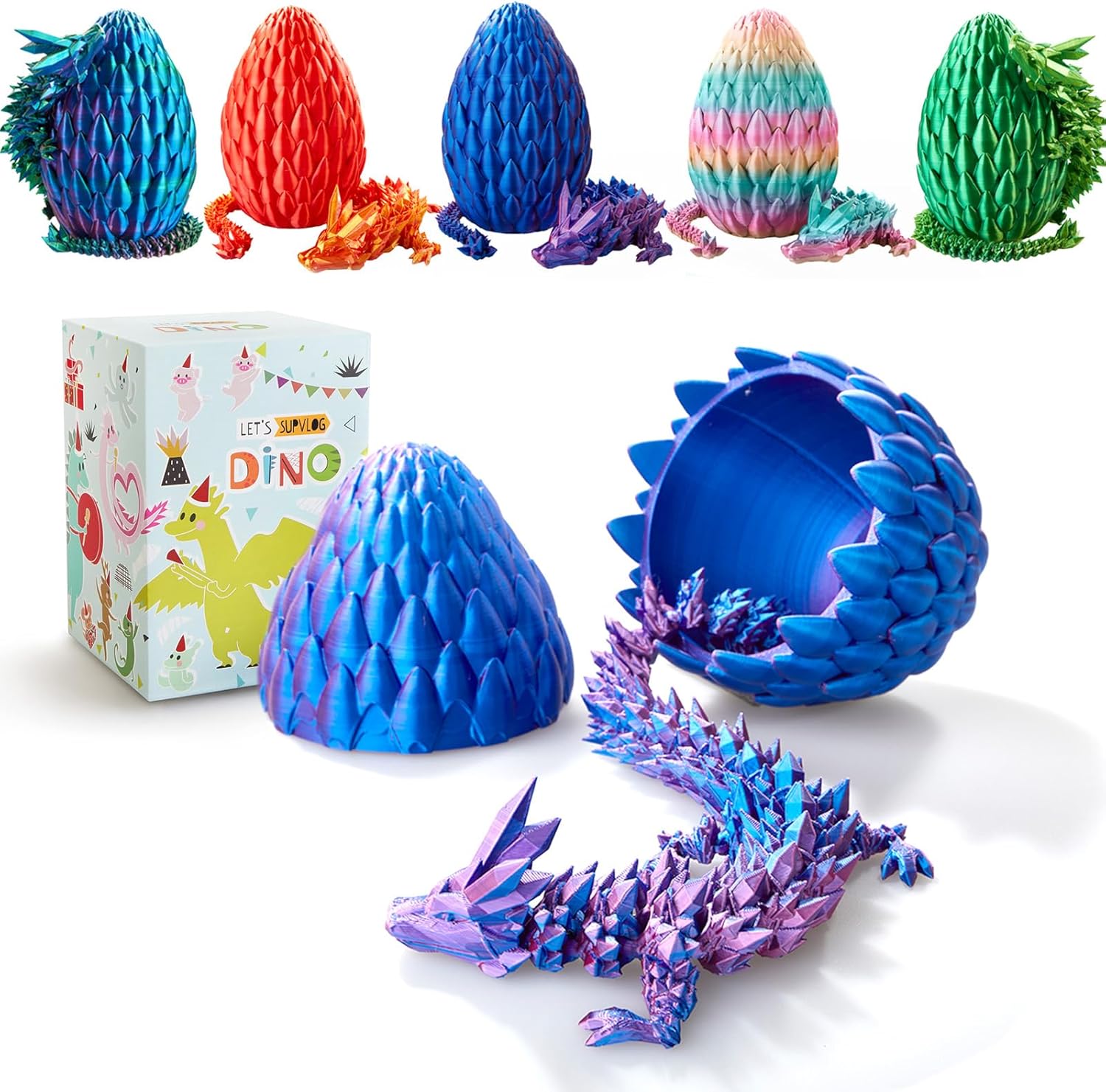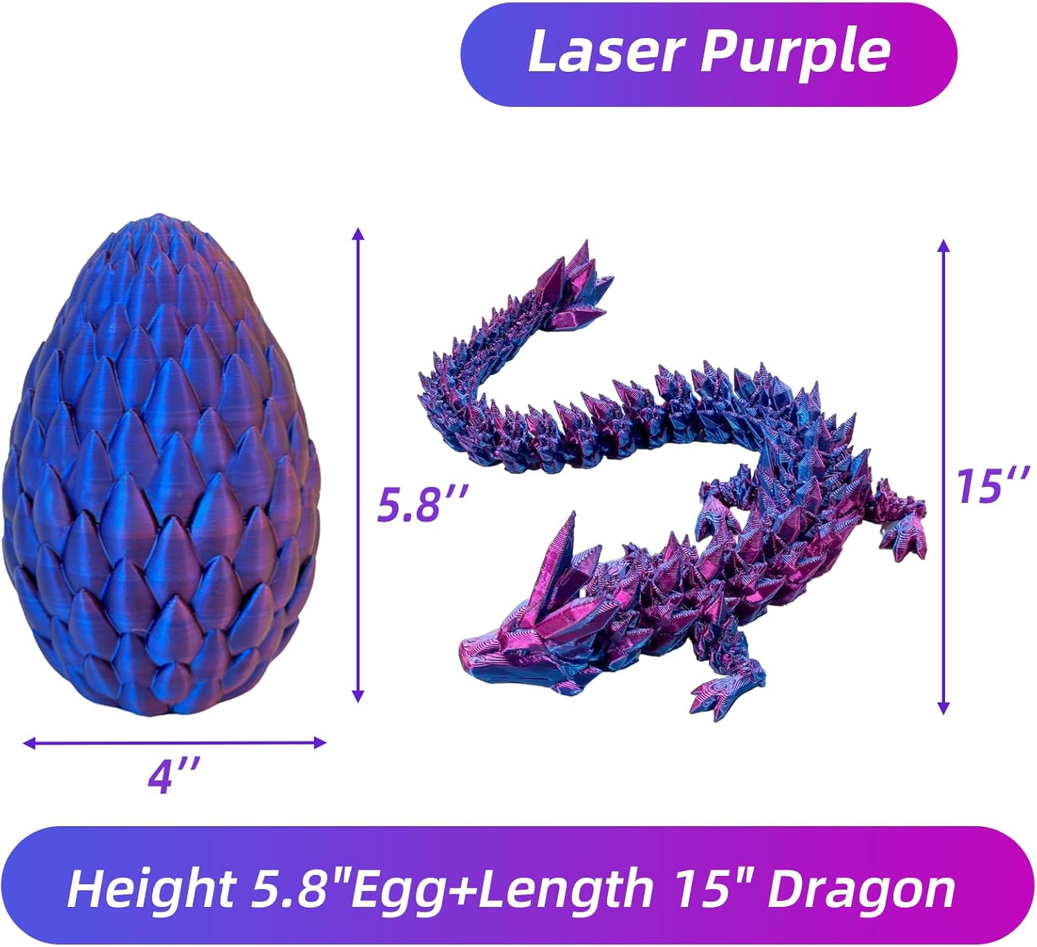 Dragon Egg,15in Crystal Dragon,Surprise Egg,Articulated Dragon,3D Printed Gift Toy,Fidget Toys for Autism/ADHD, Executive Desk Toys,Home Office Decor (Laser Purple)