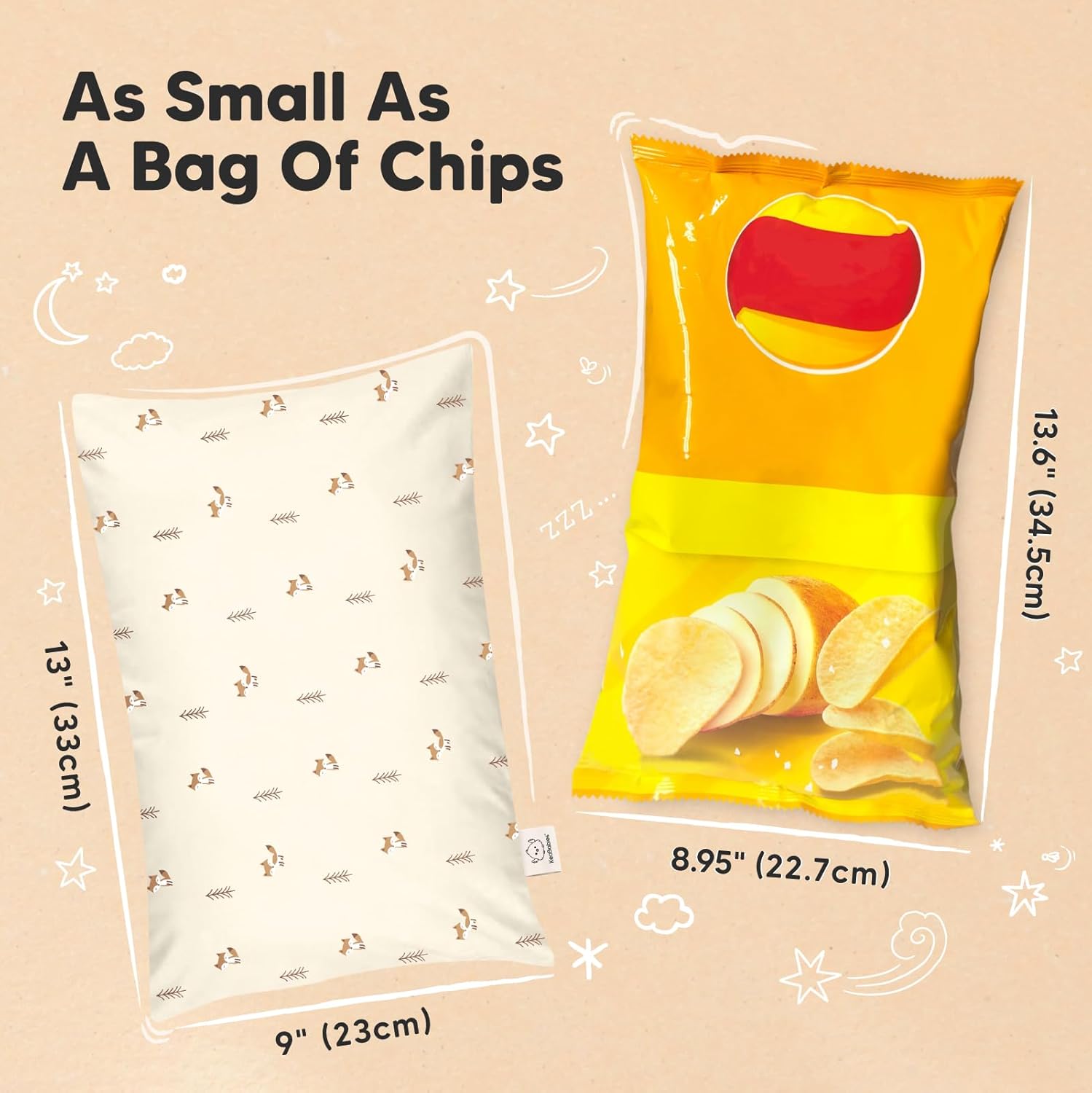 Mini Toddler Pillow with Pillowcase - 9x13 My Little Dreamy Travel Kids Pillow for Sleeping, Toddler Bed, Small, Tiny, Organic Cotton Pillowcase, Soft & Breathable, Kids 2-4 Years Old (Fox Tales)