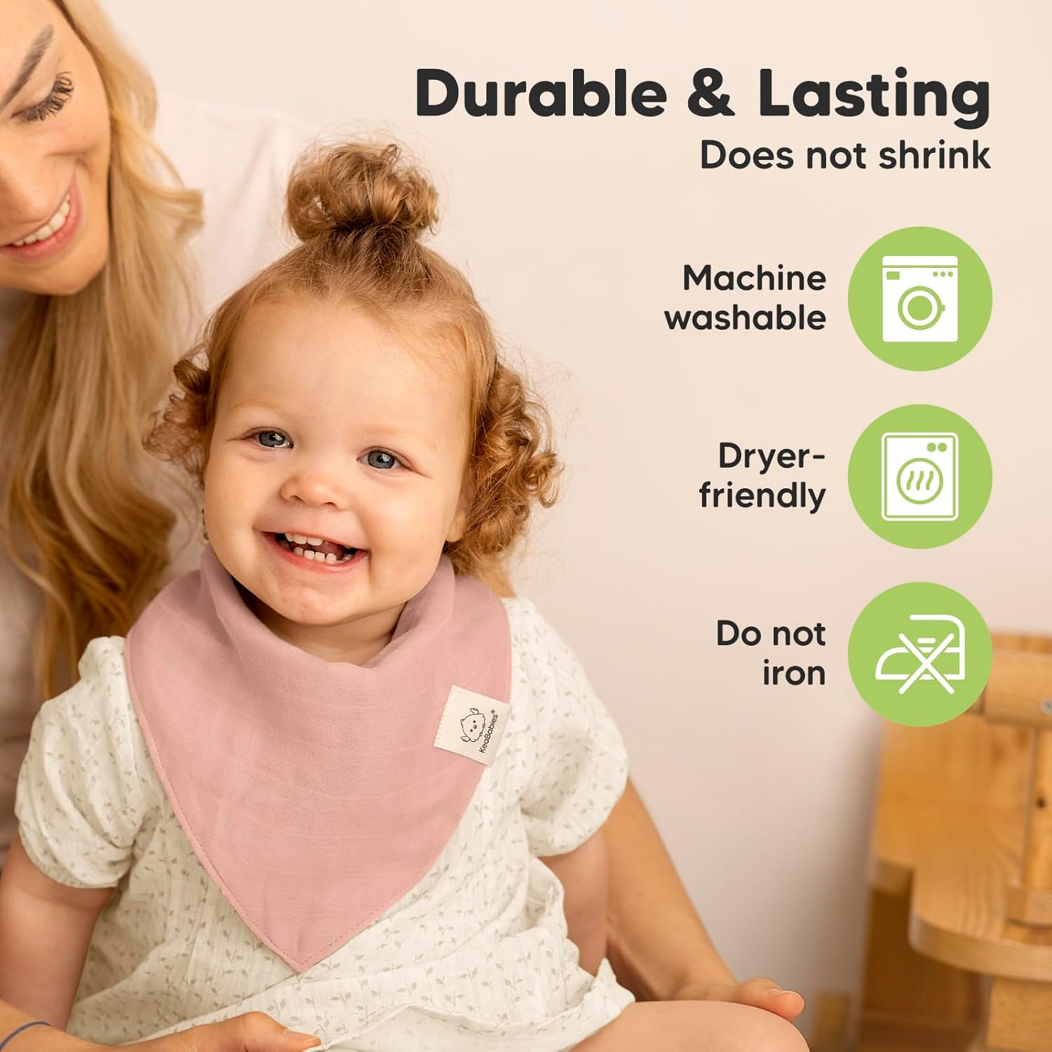 - Ultra-Soft & Breathable - The Lumi Muslin Bandana Bibs are cool to the touch, gentle on all skin types, and highly breathable. These baby drool bibs prevent heat rash and discomfort, making them ideal for teething and drooling infants and toddlers.