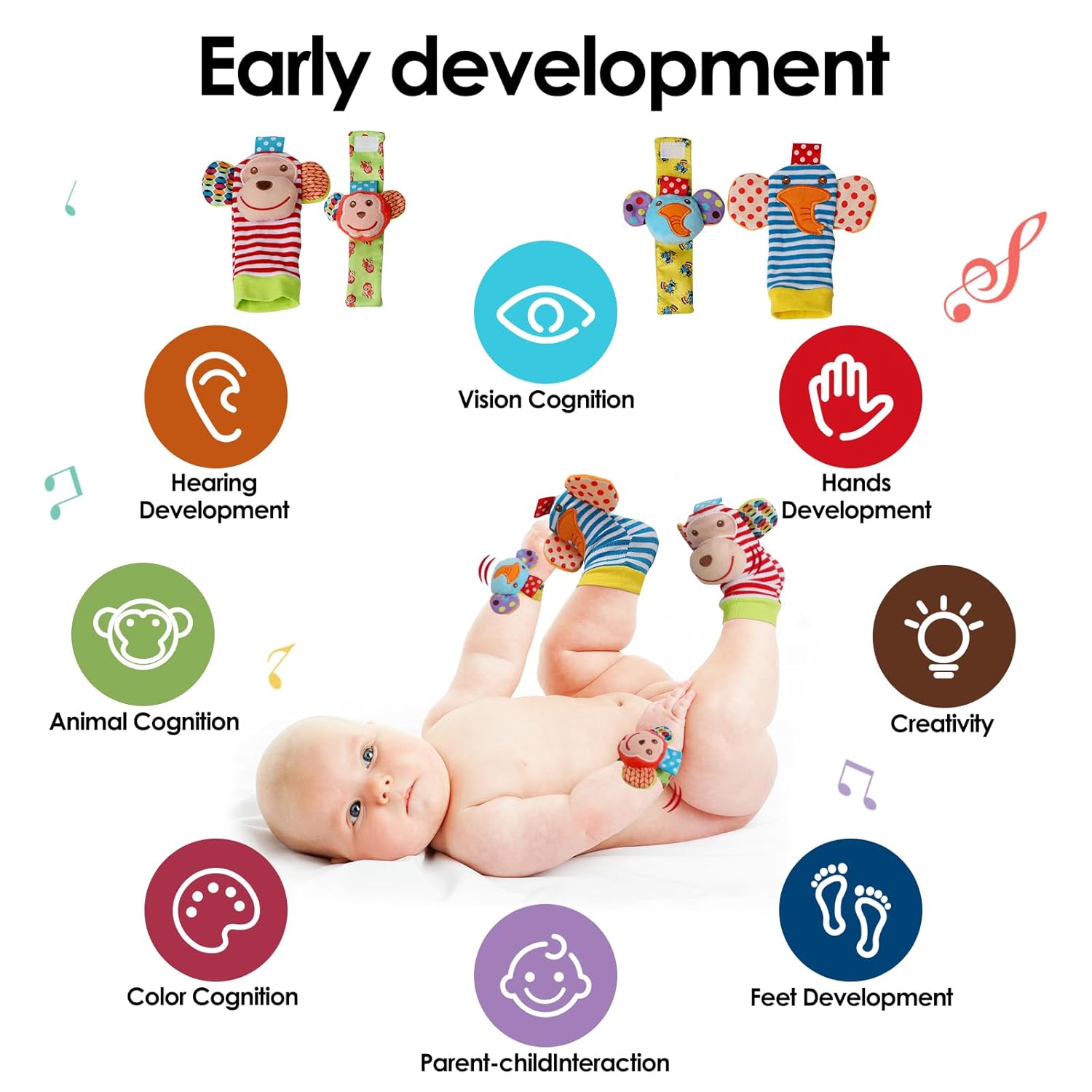 - 【5 In 1 All-Round Development】4 Removable sensory toys and 1 flower mirror, fully meet the baby's growth needs. 4 Toys: Baby teapot rattle, water cup rattles for newborn baby touching-growing,and TV rattle,clock rattle for improve baby responsiveness.Piano keyboards touching for graphics ,listening .All for colors cognitive. 1 flower mirror,as an important way for self-discovery.