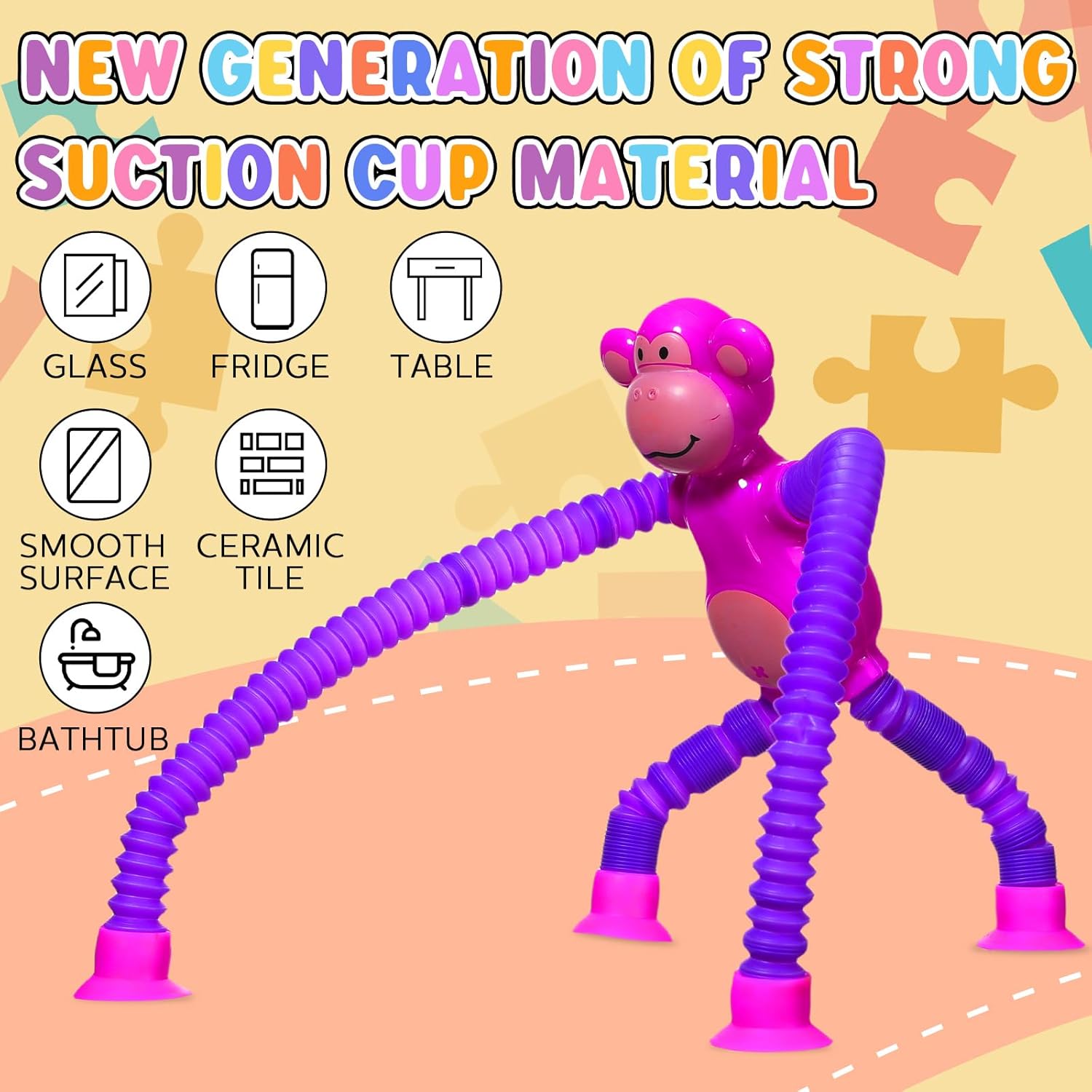 - Fun and Educational: our high chair suction toy is brightly colored and cute in appearance, which can easily attract little teens' attention, helping develop imagination, fine motor skills, hand eye coordination, and problem solving skills; The legs of our sensory tube toys can extend over 9 inches, you can have endless fun with them by stretching, rotating, wrapping, and suction
