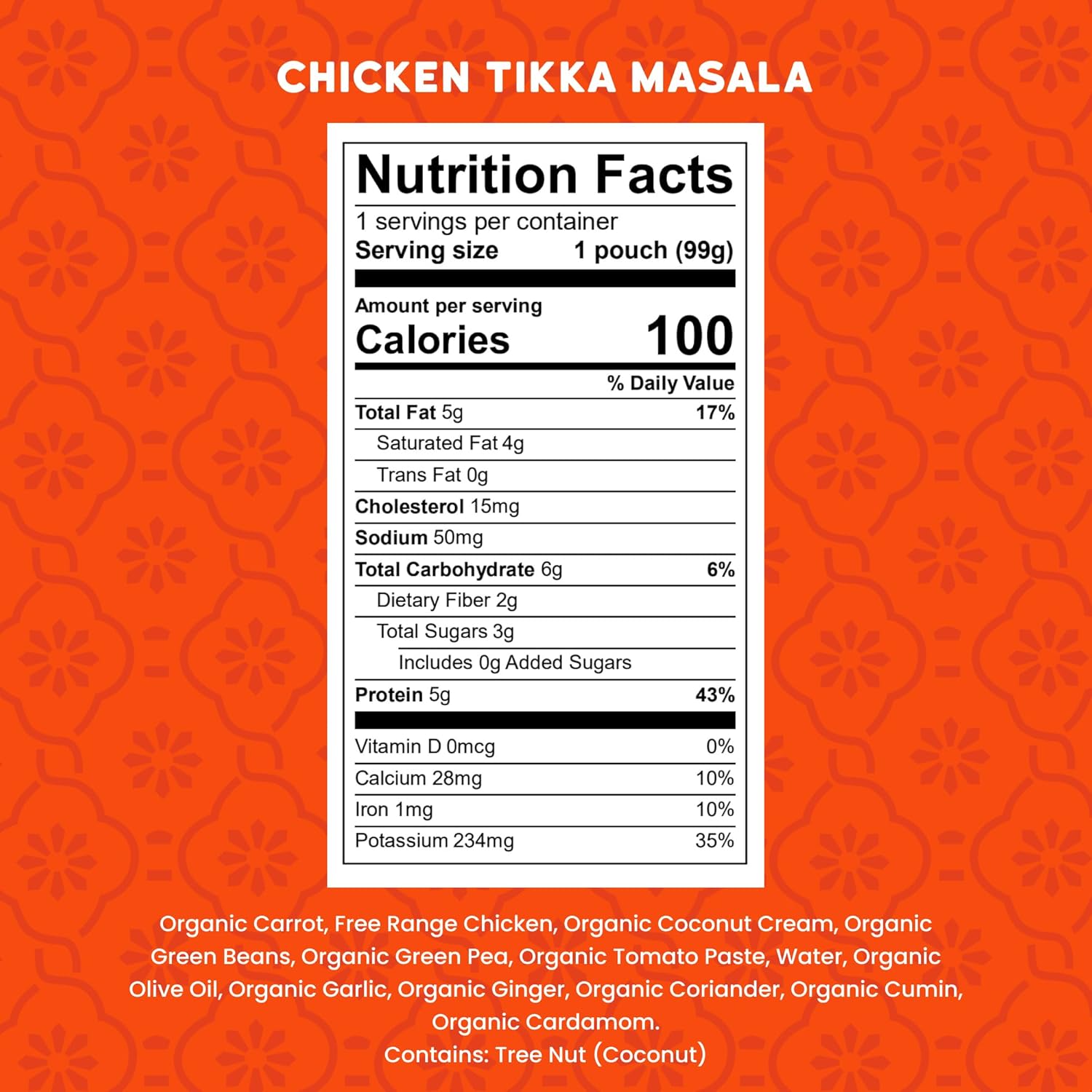 - CRAFTED WITH CARE: Our Chicken Tikka Masala baby puree chicken pouch pack mimics breast milk's nutrients using ethically sourced meats like chicken and organic veggies. Our chicken puree food pouch is clean, wholesome, allergen-free, and just right for your little food explorer