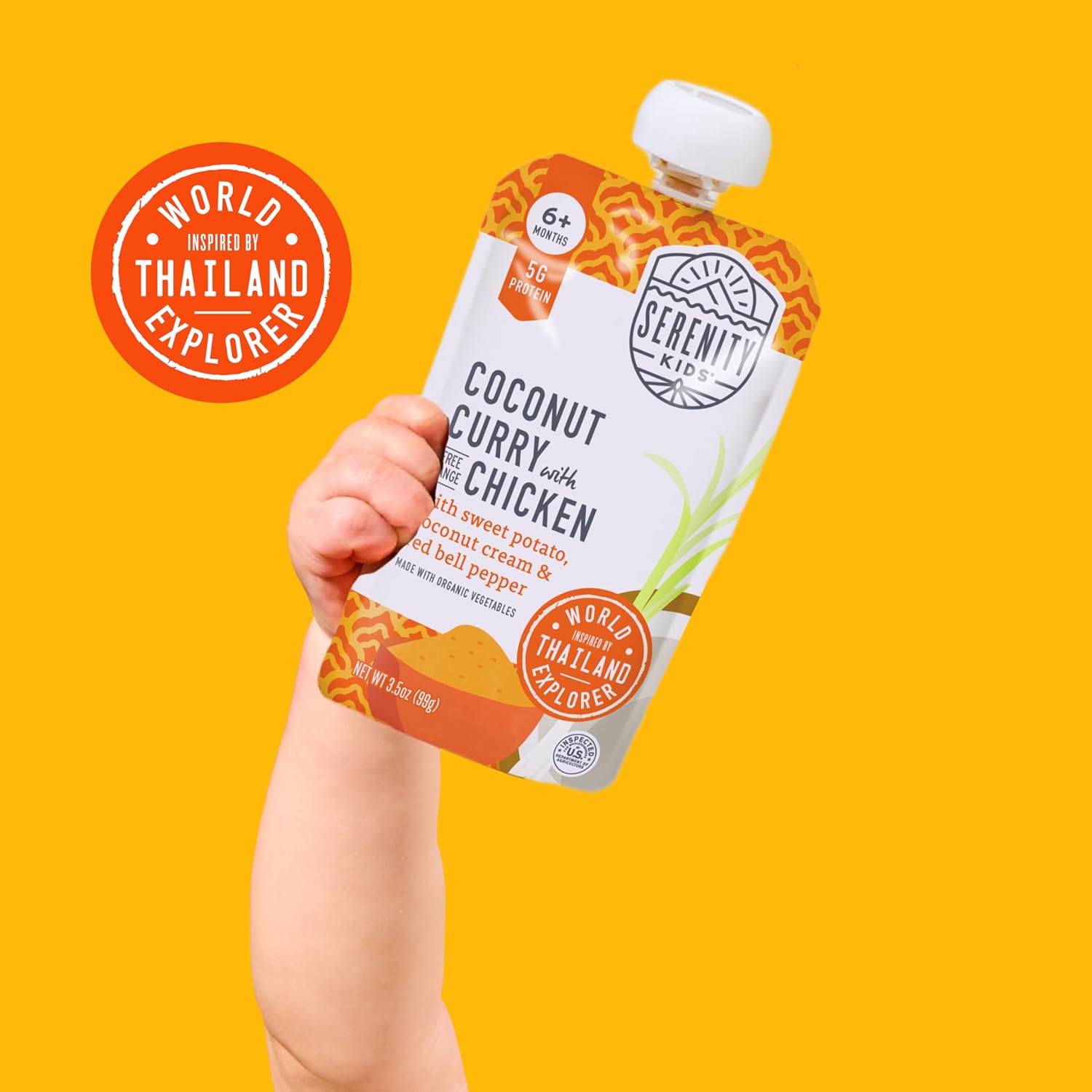 - WORLD EXPLORERS: Let your little foodie dive into new flavors with our baby friendly curry, inspired by Thai cuisine. Our baby pouch with chicken coconut curry is perfect for developing their palate and love for savory foods