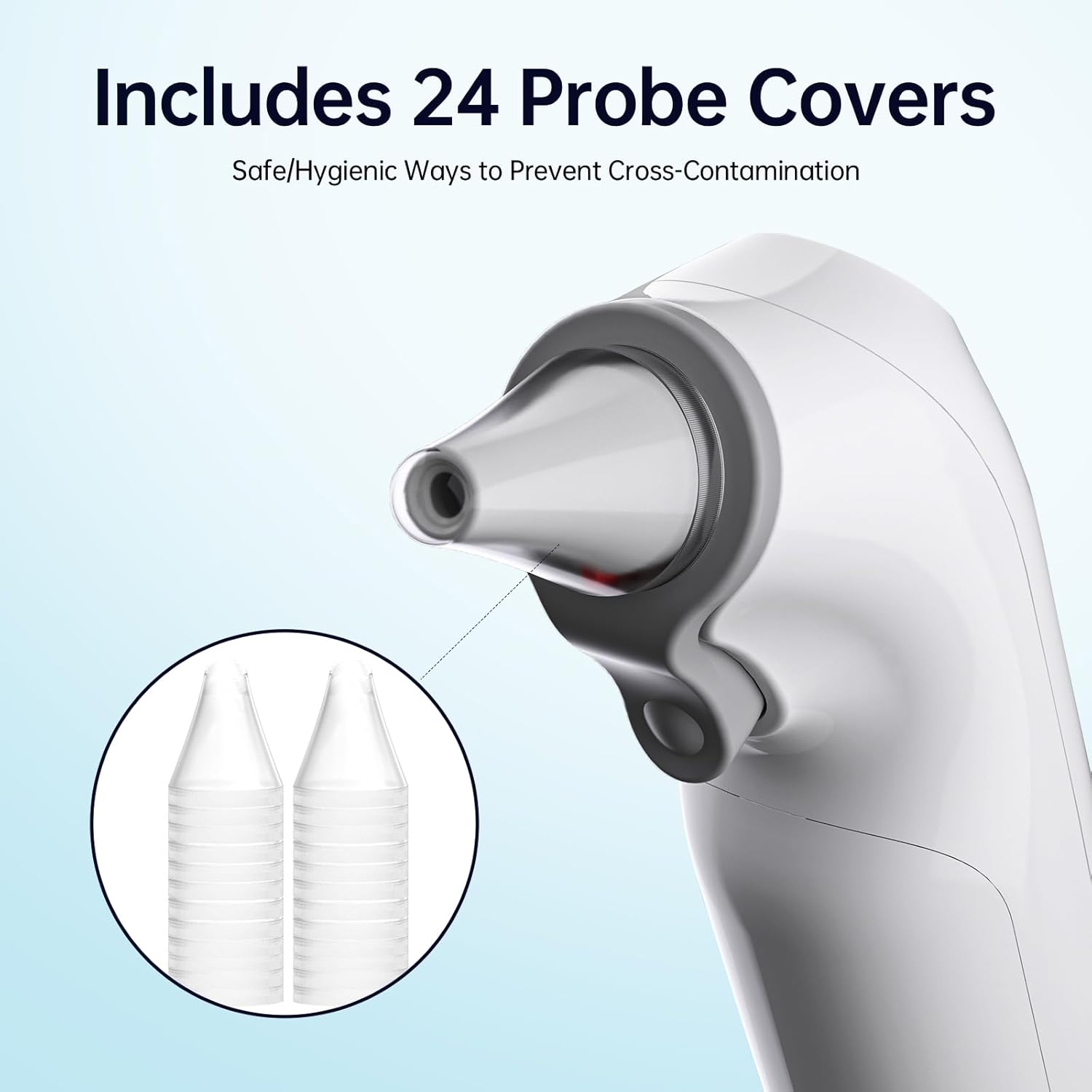 - Included Components : 1×Ear Thermometer, 2×AA Batteries, 24×Probe Covers, 1× Storage Bag, 1×Manual