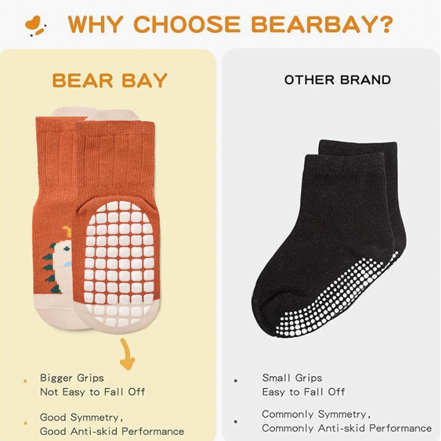 - Comfortable: Premium breathable cotton blend gives Bearbay socks excellent air permeability and ductility as well as warmth. Hand linked Seamless smooth toe and reinforced “C” heel as well as no-pinch cuff offering all day comfort, breathability and softness to baby’s foot