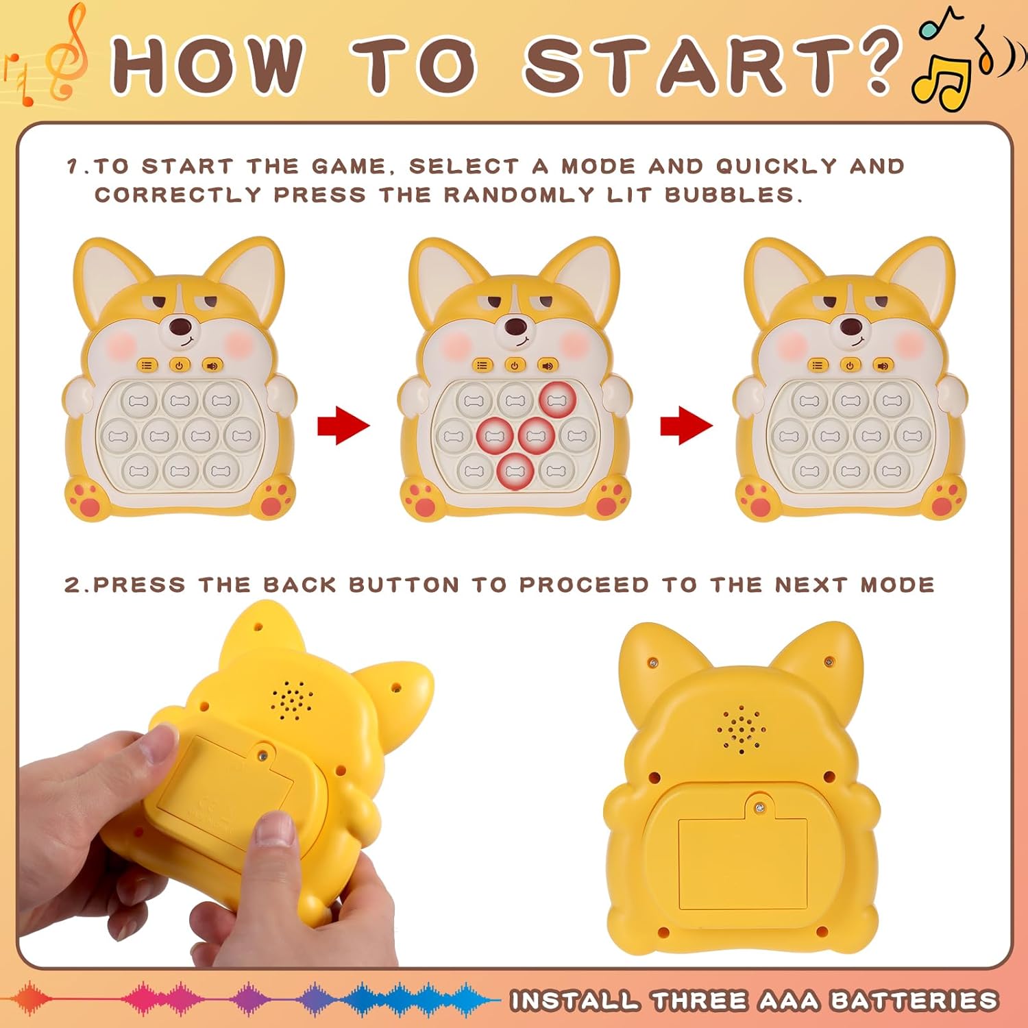 Fast Push Game Pop Fidget Toys for Kids, Fast Push Bubble Game, Quick Push Pop Game for Boys & Girls Age 3-12, Handheld Puzzle Game Sensory Toys Relaxation and Decompression (Yellow Corgi)