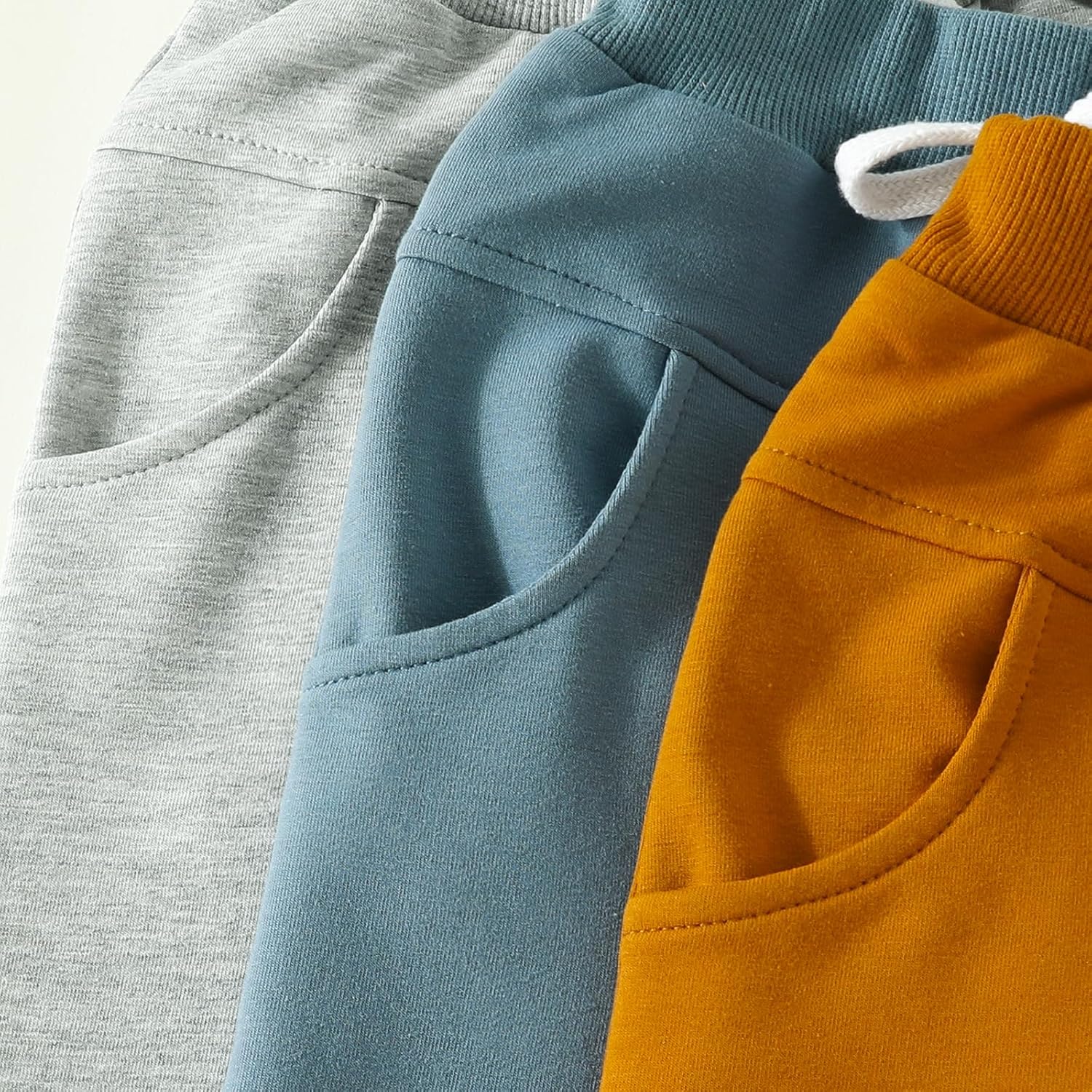 • Basic Plain Baby Pants Design: Baby boy's clothing, 3-Pack baby sweatpants, solid color, decorative drawstrings (no functional) with pocket, fashion and cute.