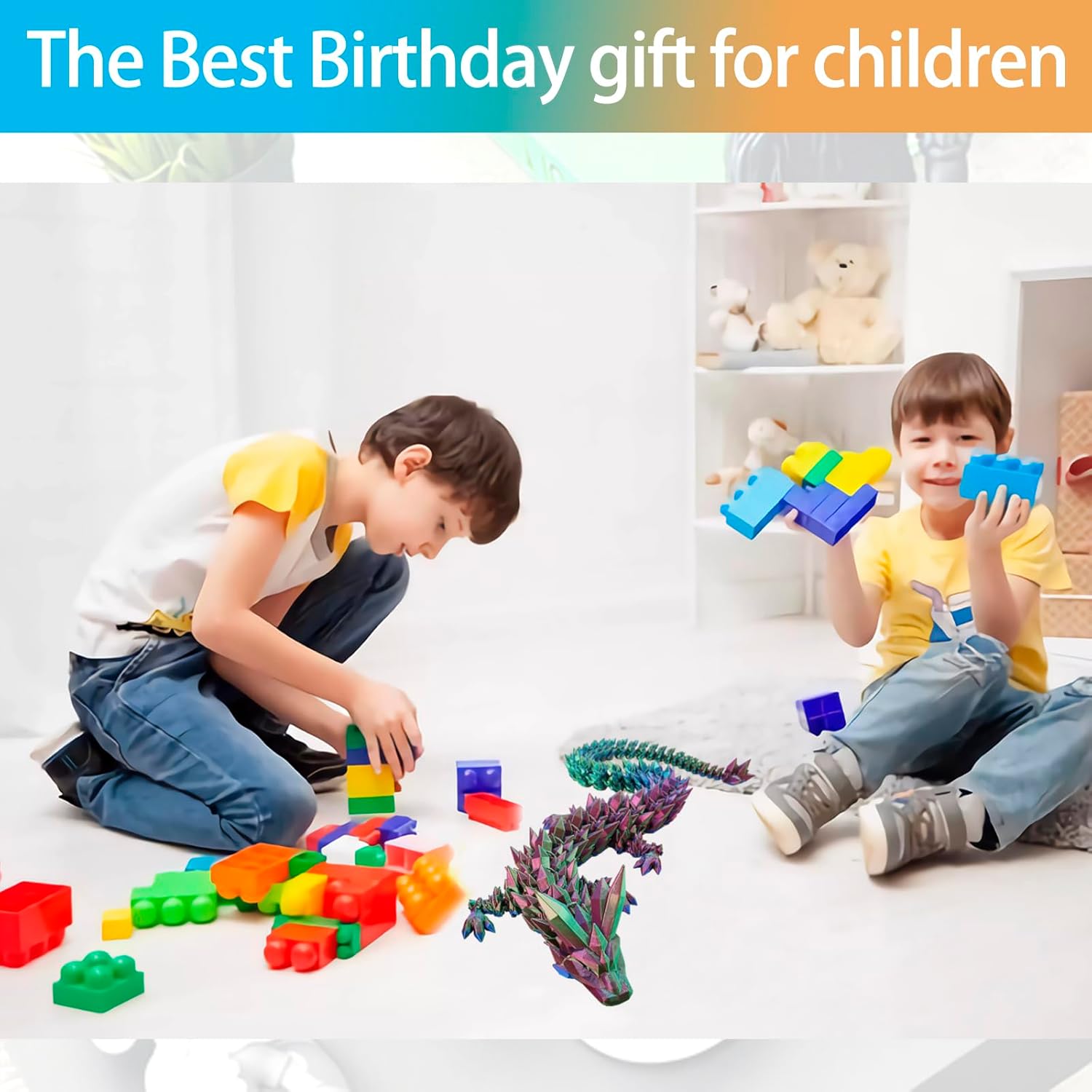 3D Printed Dragon, 3D Dragon,24 Inch 3D Printed Fidget Dragon, Bigger Fidget Crystal Dragon Toys, 3D Printed Articulated Dragon for Home Office Car Desk Decor Toys (Red Yellow Blue)